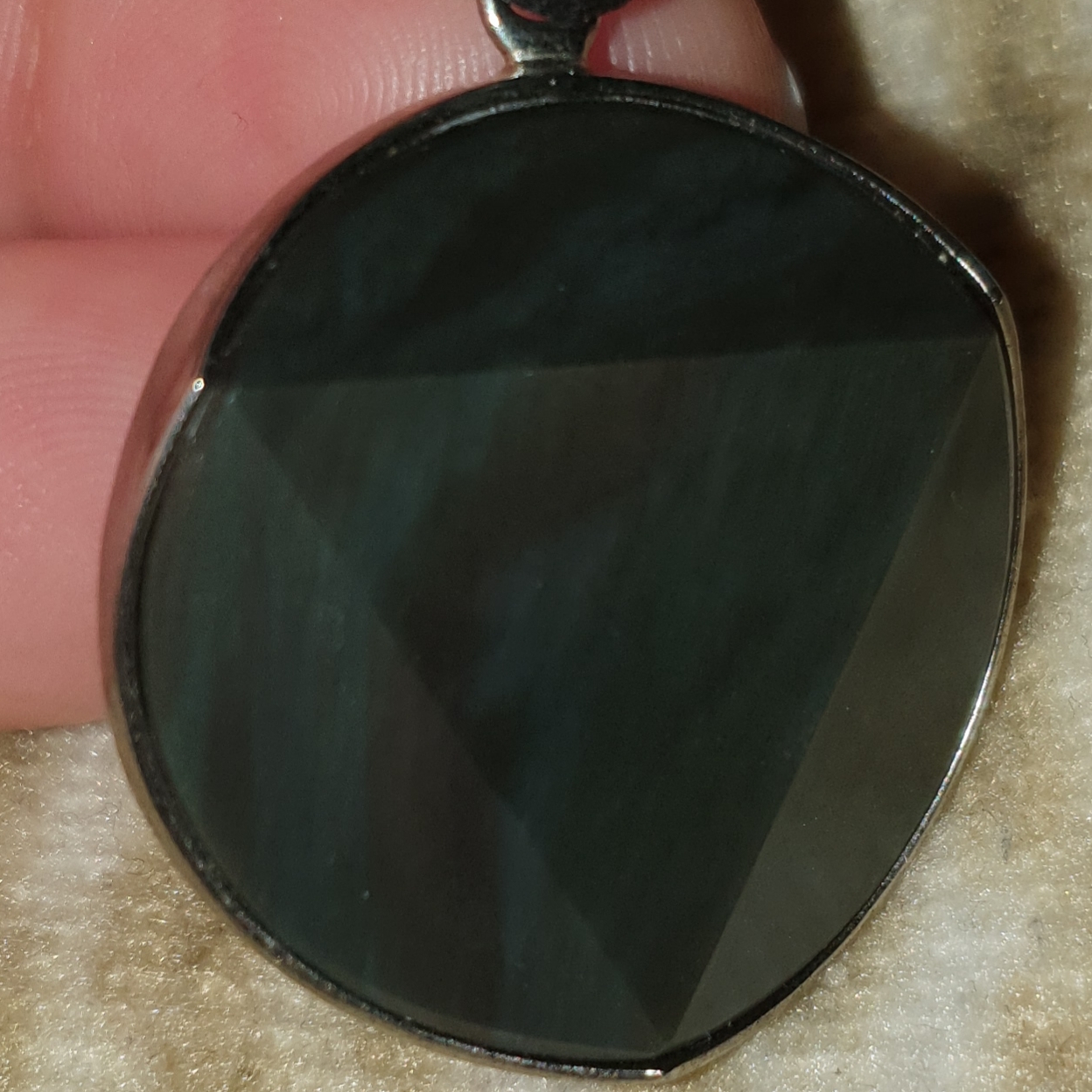 Ja, der Schliff gefällt mir auch gut. Mir ist auch aufgefallen, dass die Silbereinfassung an den Kanten der Facettierung etwas erhaben ist, was ich sehr schön finde.