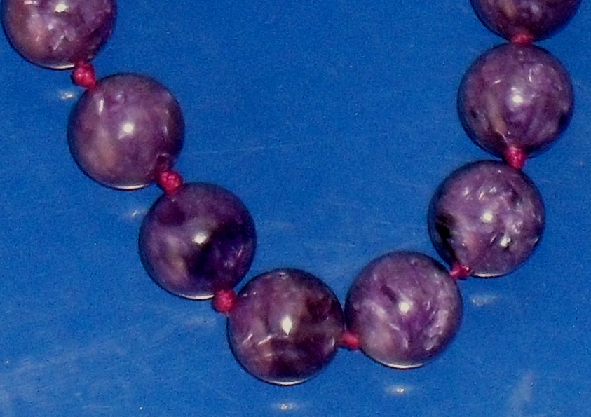 habe eine Kette, wo ich mir nicht klar bin, ob es Amethyst, Charoit oder Sugilith Steine sind. Für mich sieht es aus, wie eine Mischung zwischen allen dreien. Vielleicht kennt ihr euch besser aus und könnt es erkennen.