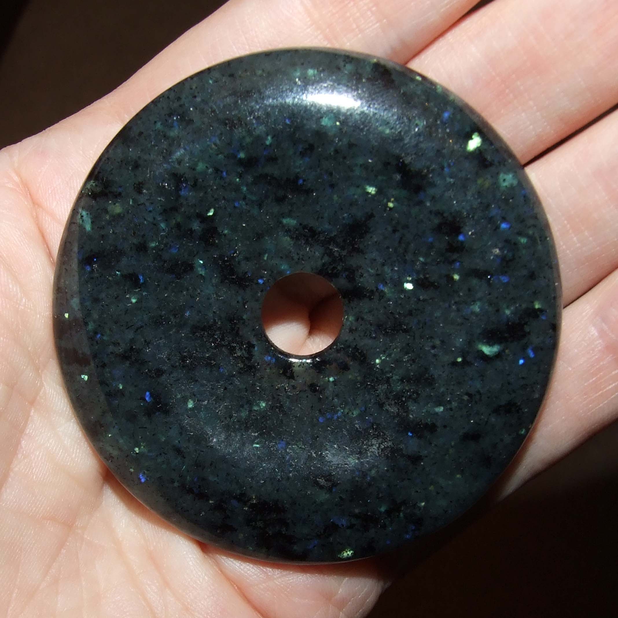 Ein etwas dickeres Baumwoll- oder Seidenband dran und als lange Kette, etwas über Bauchnabelhöhe. Meine grössten Scheiben sind aber glaub ich "nur" 5 - 5.5cm...![]()