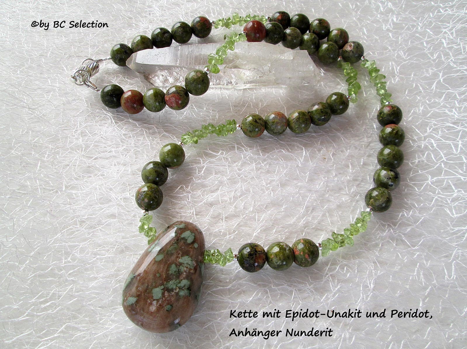 Grün ist ja eigendlich nicht meins, aber mit dem Nunderit-Anhänger gefällt mir die Kette.