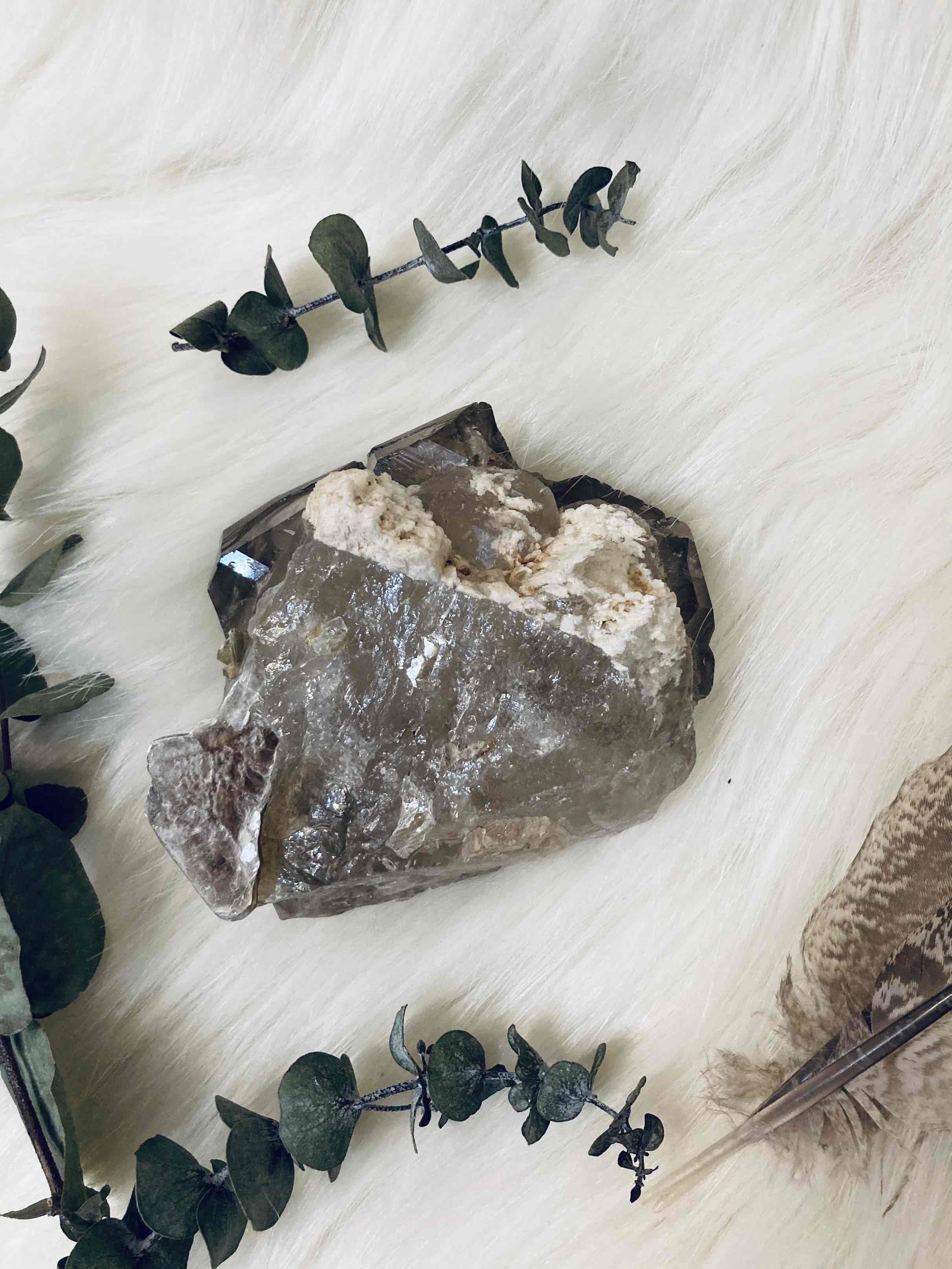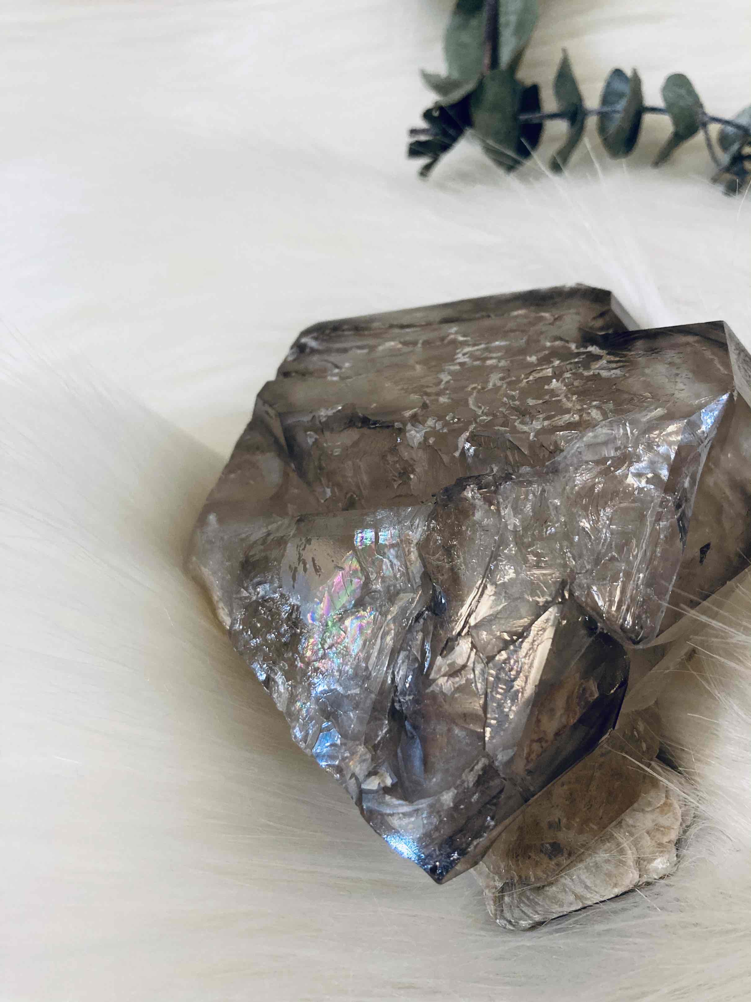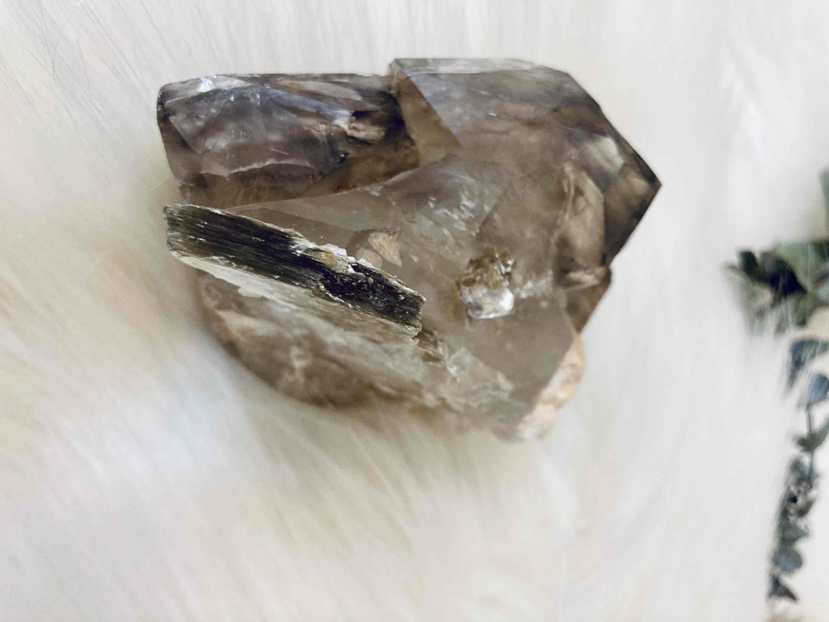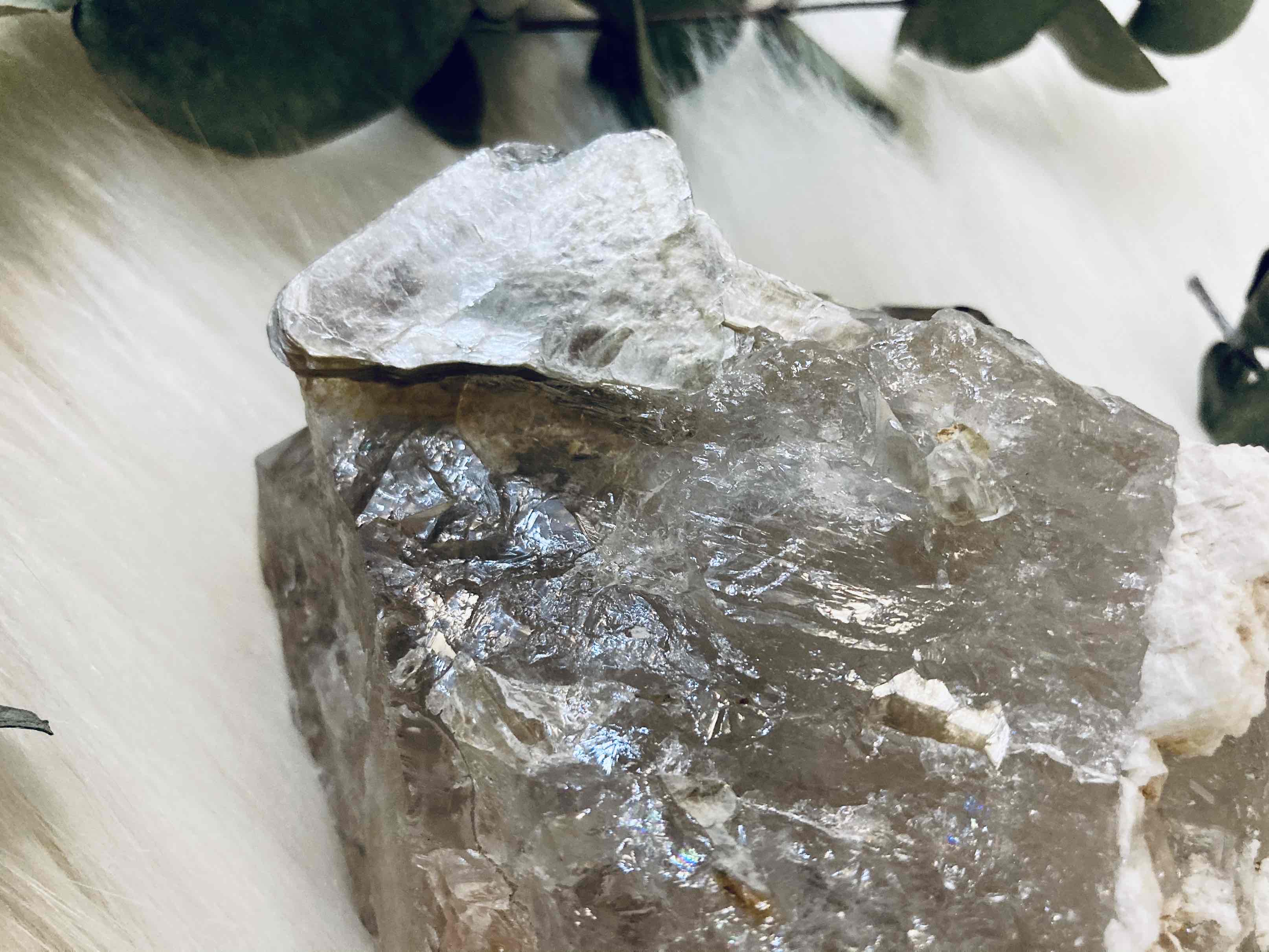 Die zwei erwähnten Stellen am Kristall kann ich nicht eindeutig Zuordnen, was es sein könnte. Eines ist silberfarben / spiegelartig und die zweite Stelle könnte Calcit sein (siehe Fotos).