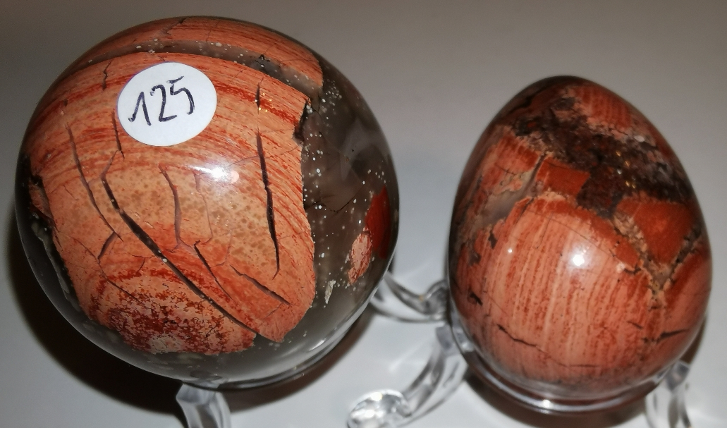 Die zuletzt gezeigten Eier erinnern mich an einen Schlangenhaut-Brekzien-Jaspis (Brecciated Snakeskin Jasper) aus Australien.