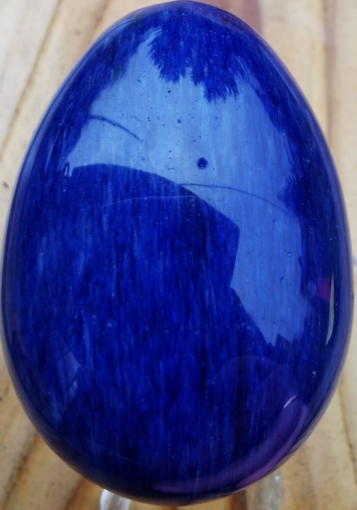 Dieses Ei wurde als Blauer Quarz angeboten, wobei der "Stein" (Glas) kaum Ähnlichkeiten mit dem Produktbild hat. Für mich war das ein reines Lotto spielen, da er nur 10€ inklusive Porto kostete.