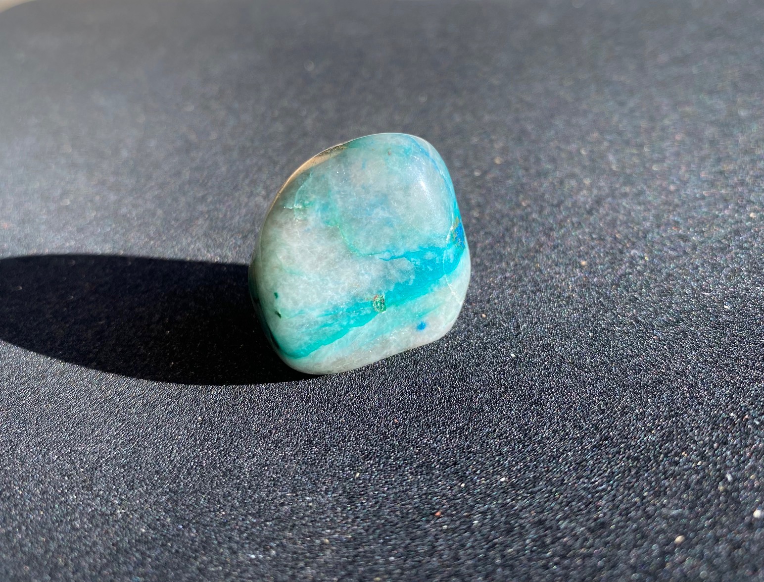 Vielen Dank für die Einschätzungen, ich hab jetzt nochmal ein Foto in feinster Sonne gemacht und denke, dass es wohl ein Amazonit ist