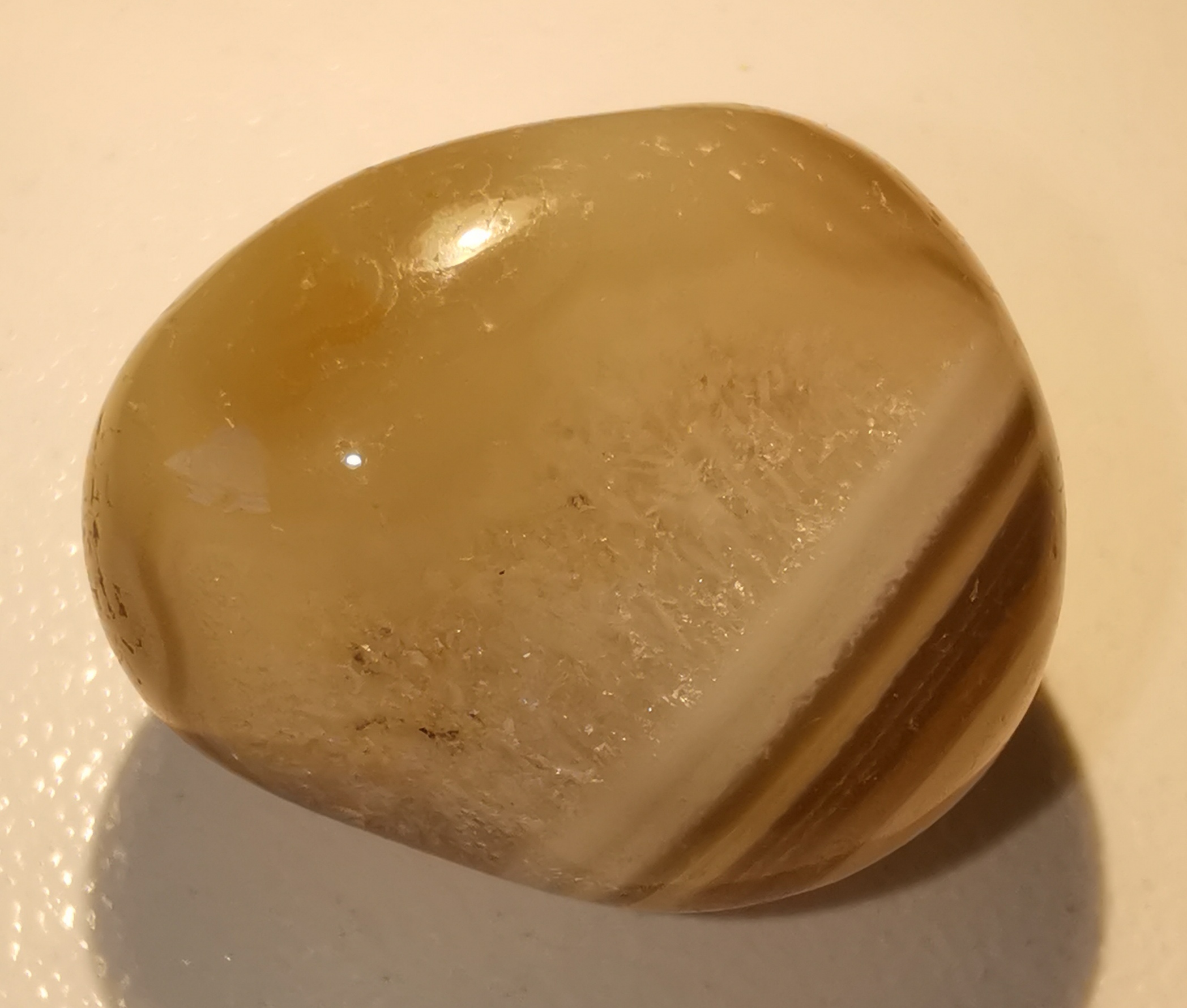 ich habe hier diesen Trommelstein. Ich hätte ihn als gelben Achat eingestuft. Stimmt ihr mir da zu?