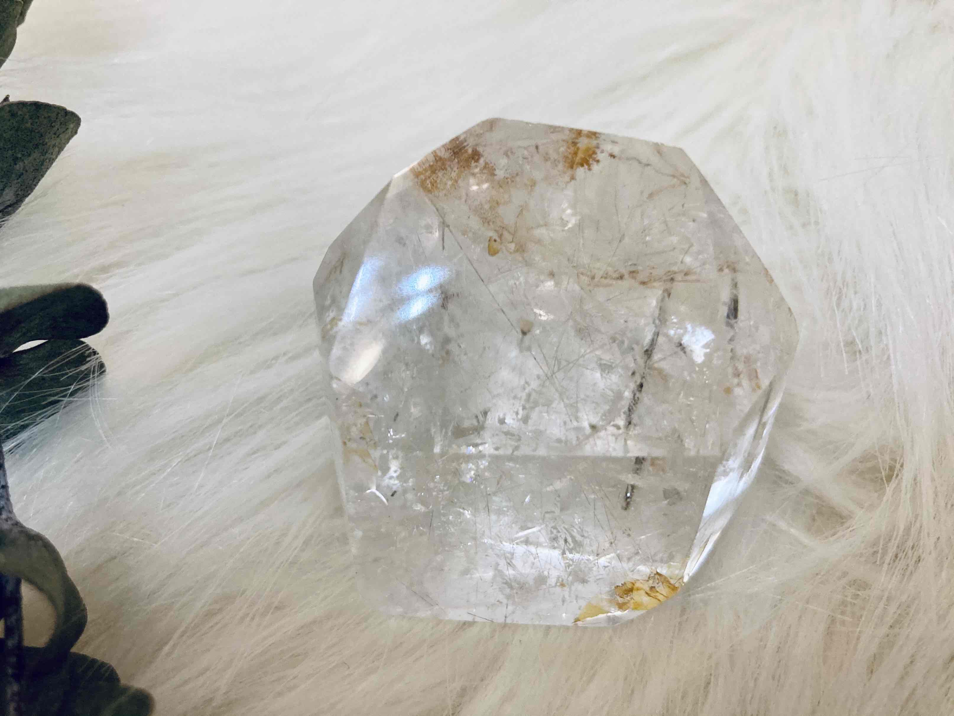 Dieser wunderschöner Silber Rutil Quarz mit vielen Nadeln und einem Anflug von Turmalin sucht ein neues Zuhause.