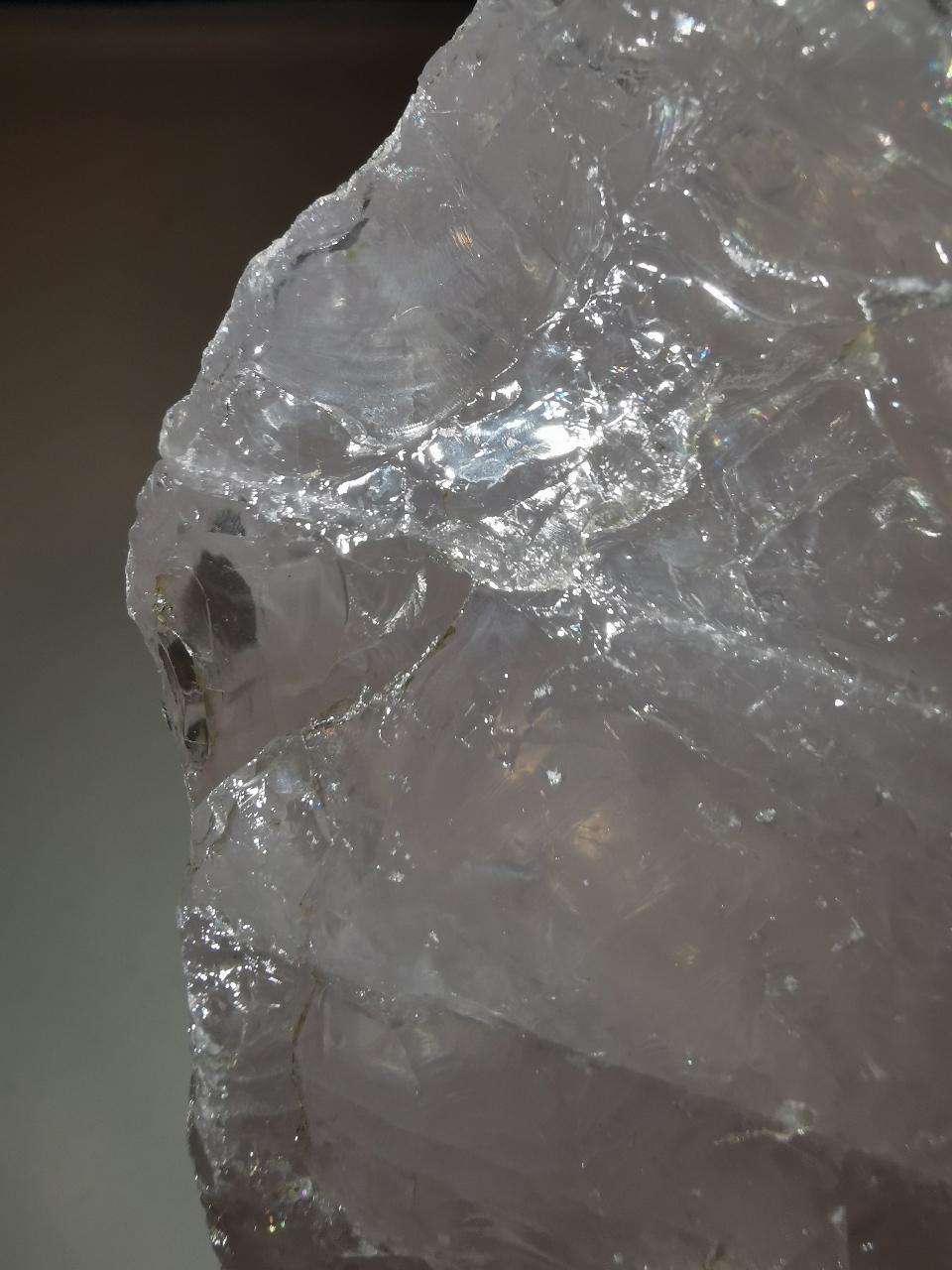 Halbdurchsichtig und leicht rosa.