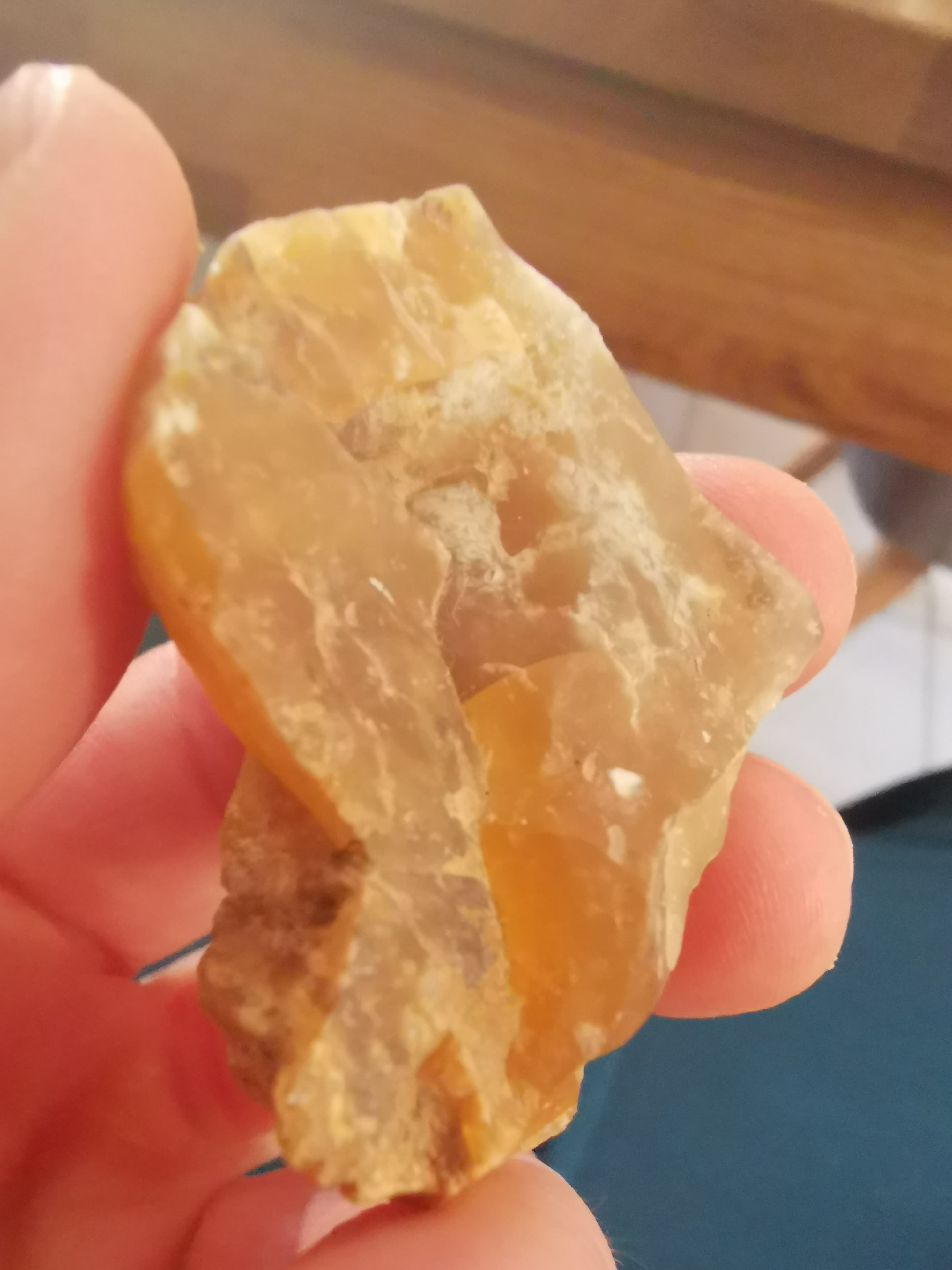 Ich finde hier öfter mal gelbe Flinte. Mal sehen, ob ich irgendwo einen aufgehoben habe (jetzt ist es draußen noch dunkel). Die sehen manchmal wie Bernstein aus, nur das sie schwerer sind ;-)