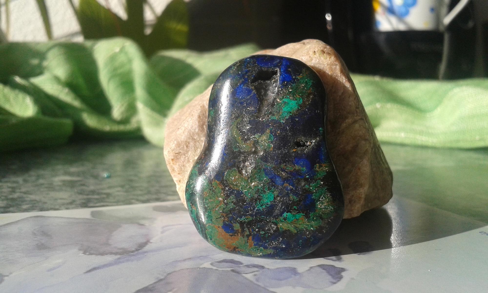 Die Steine von Silvie sind wohl die ersten ECHTEN STEINE Azurit-Malachit in getrommelter oder geschliffener Form, die ich sehe. Sonst kenne ich eigentlich Azuritmalachit nur rekonstruiert als nicht echte Steine - oder besser hal echte Edelsteine. Also fuer mich ist das eine Raritaet.