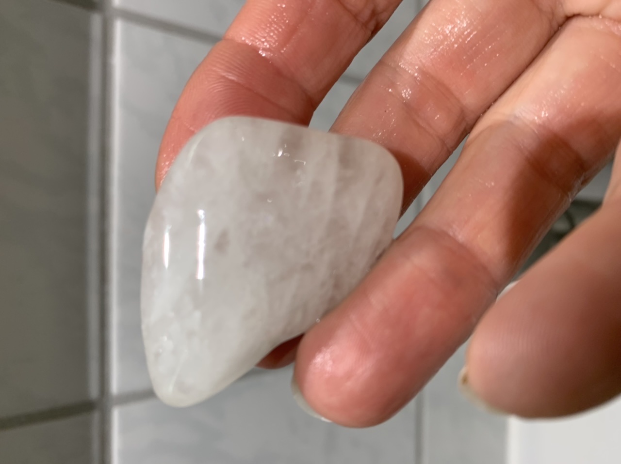 Sehr schlecht zu erkennen aber ich würde schon auf einen geschliffenen Quarz tippen. Ist aber mehr geraten, da das Bild zu unscharf ist.