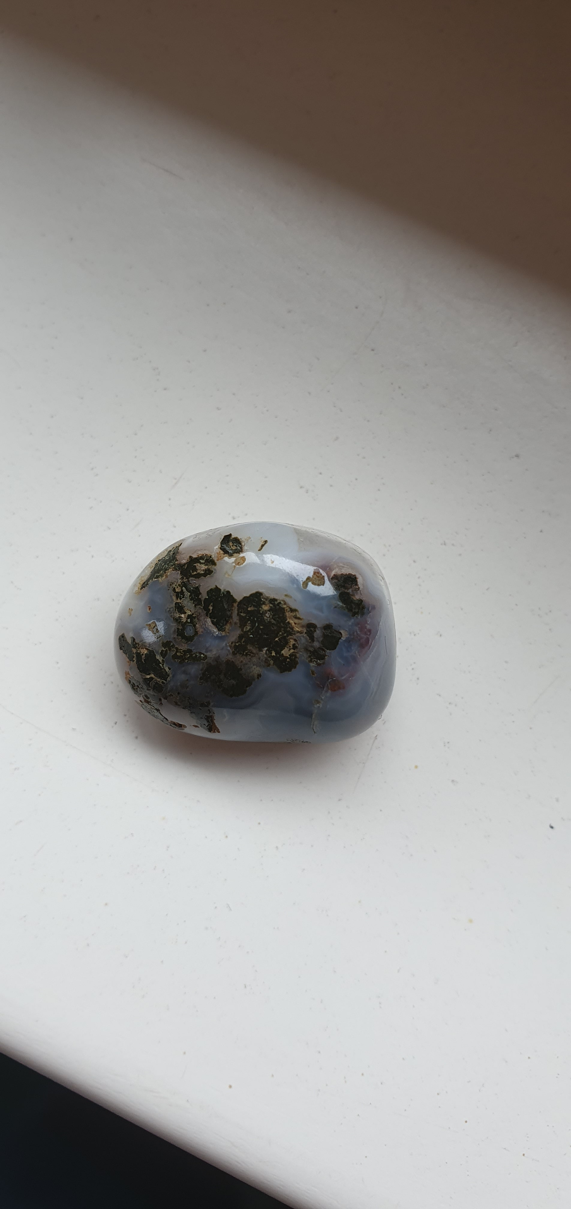 ich denke, kein Moosachat, "normaler" Achat. Beim Anklicken des ersten Fotos erkennt man perfekt die Bänderung, die typisch für den Achat ist. Ein schöner, sanfter Stein, auch das Muttergestein (das Schwarze) mag ich gerne. Sehr hübsch!