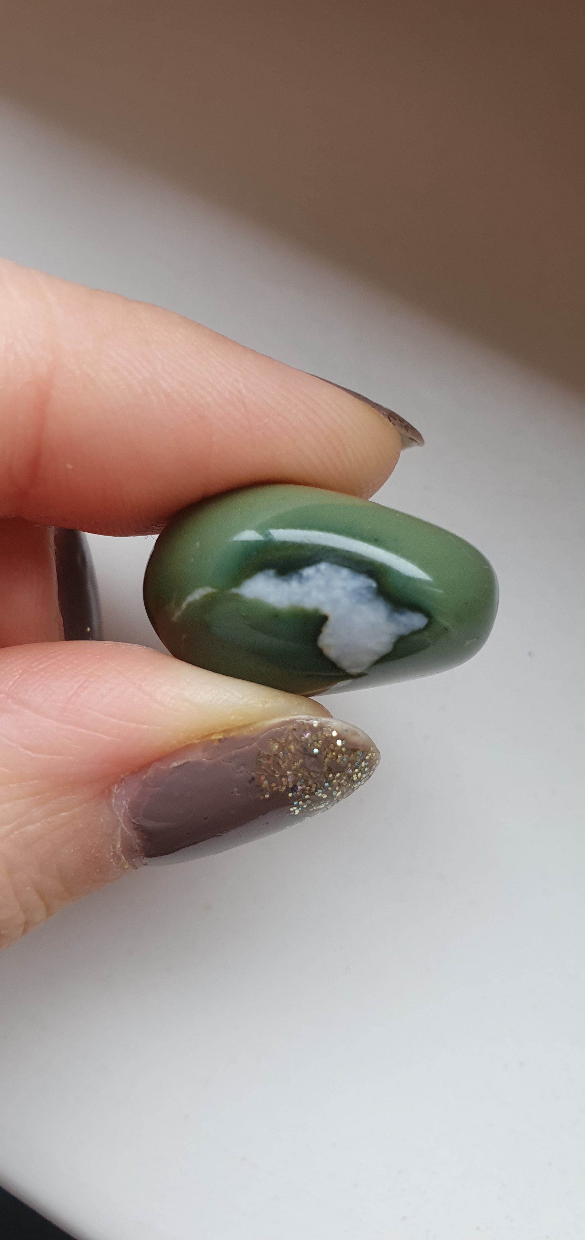 Ich habe hier einen hell- bis dunkelgrünen Stein mit etwas weiß. Wie immer freue ich mich über jede Hilfe