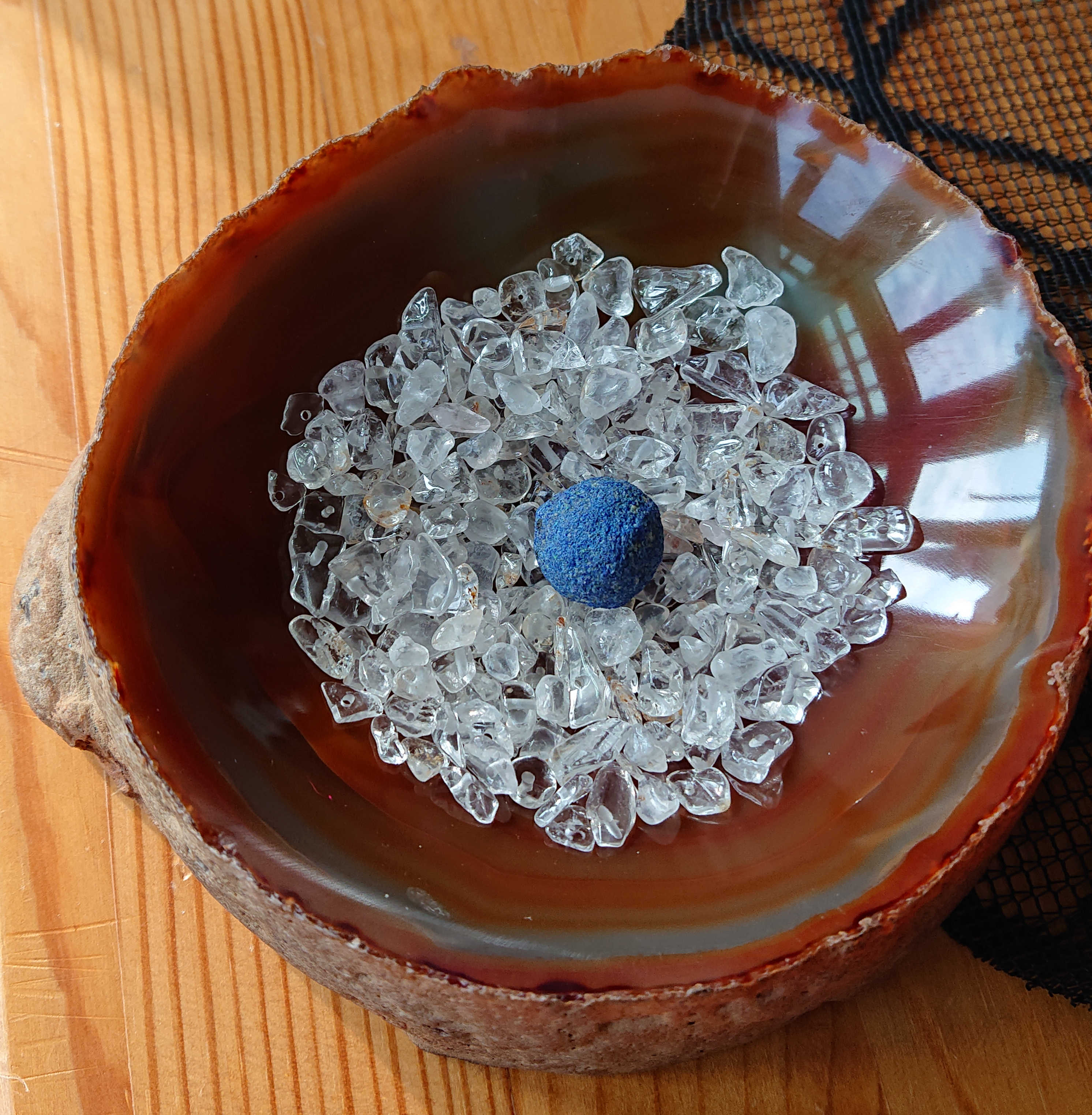 Reinigung: 1x wöchentlich in Hämatit Trommelsteinen, aufladen im Vollmond oder in Amethystdruse