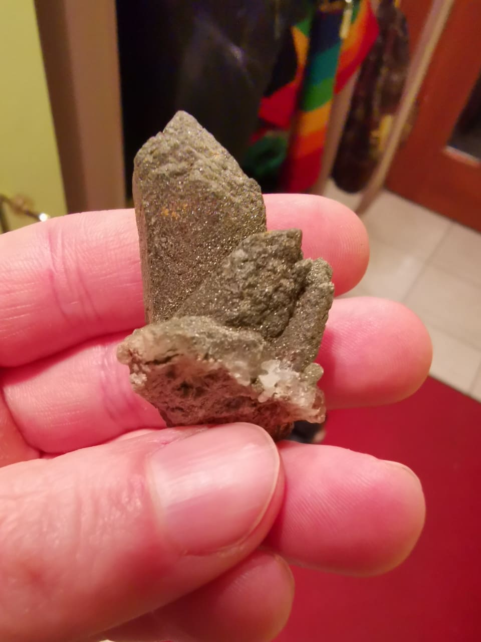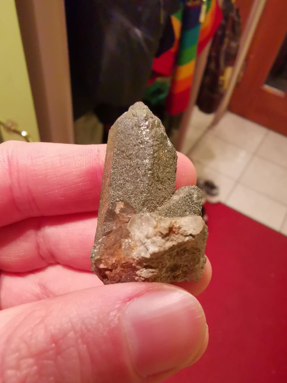 Das war wohl mal ein Bergkristall. Aber mit Pyrit drüber?