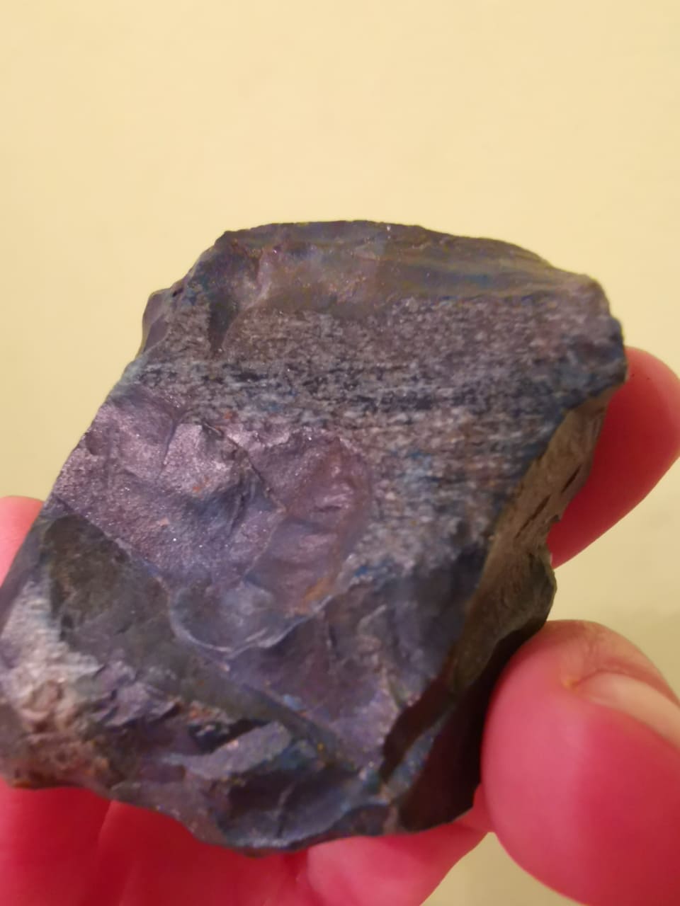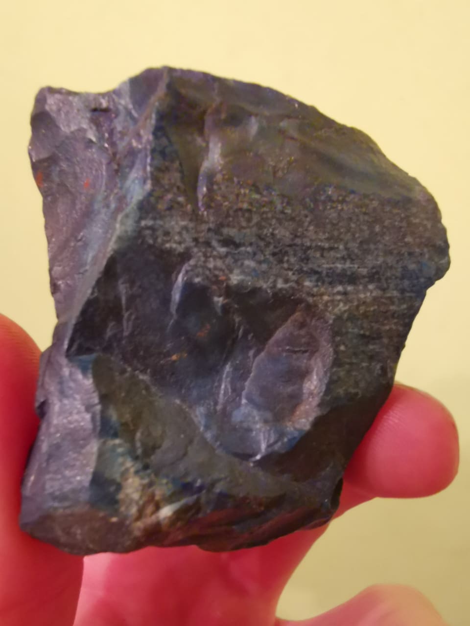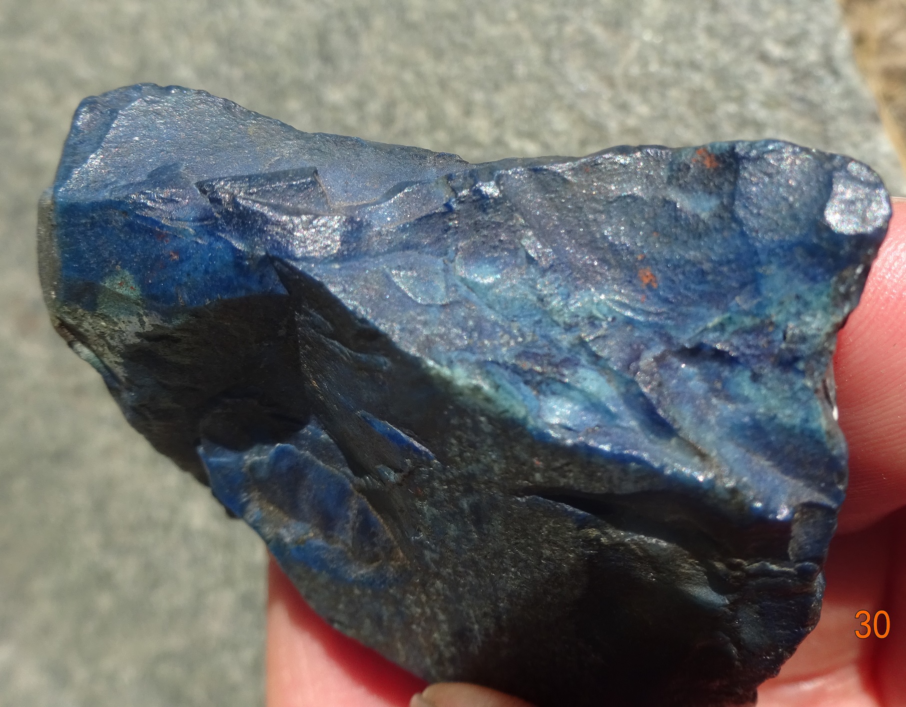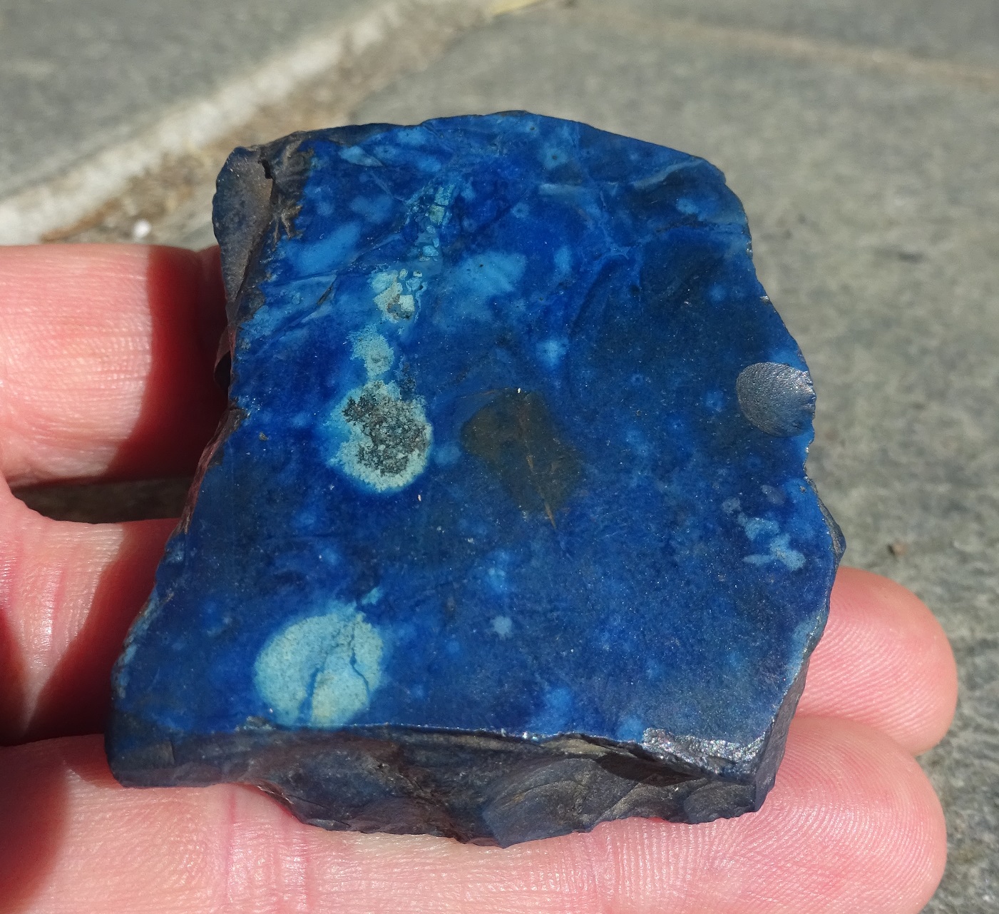 Das blau ist im ganzen Stein, auch an der abgeplatzten Stelle. Zusätzlich sind mir die roten Flecken auf der Rückseite aufgefallen