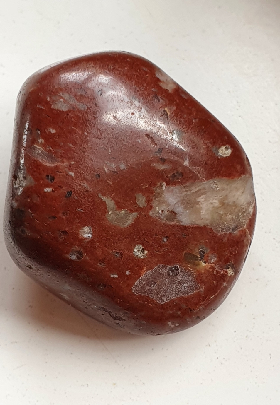 Ich habe hier zwei dunkelrote Steine mit mehreren Einschlüssen. Könnten die eine Art Jaspis sein?
