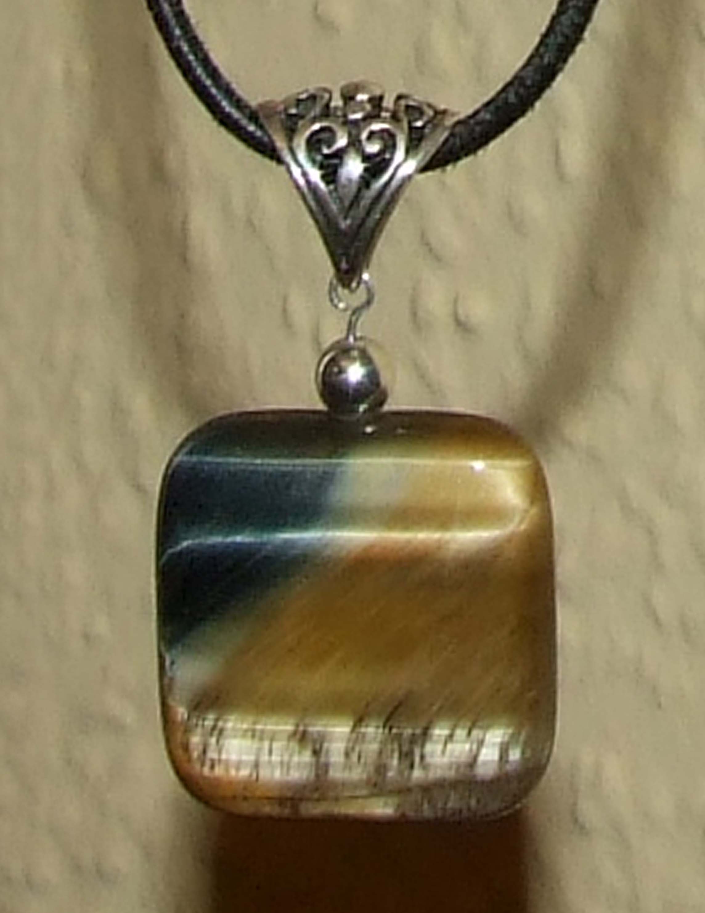 Danke. Ich finde auch, dass sie gut zu solchen eher massiven quadratischen Steinen oder auch Discs passt. Ich habe auch eine Granatkugel an solch einer Öse.