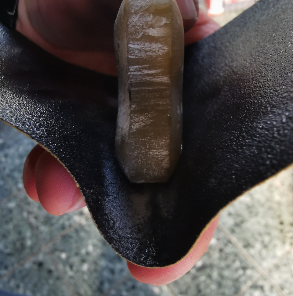 Bis jetzt war es ja noch einfach aber nun müssen die beiden Rundungen geschliffen werden. Auch hier habe ich das Schleifpapier gebogen, jedoch kann man so nur langsam schleifen und muss ständig das Herz abwaschen und nachsehen, dass man die richtige Rundung erreicht. IMG_20210425_191920(2).jpg