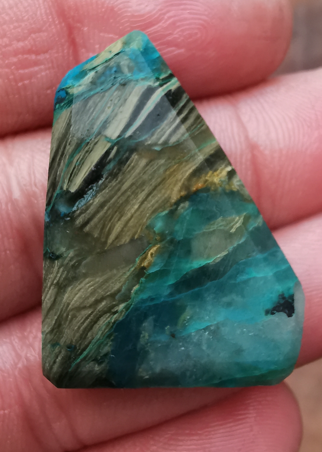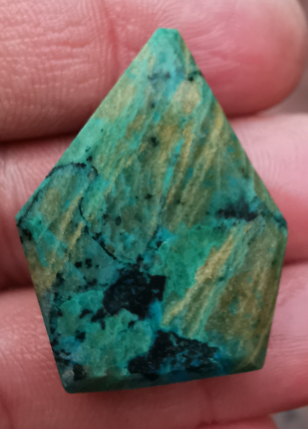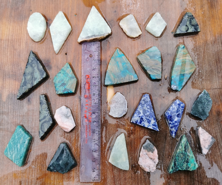 Durch das Schleifen und Polieren kommen die Farben richtig schön zur Geltung, während dessen vorher der Stein oft eher unscheinbar aussieht. :D