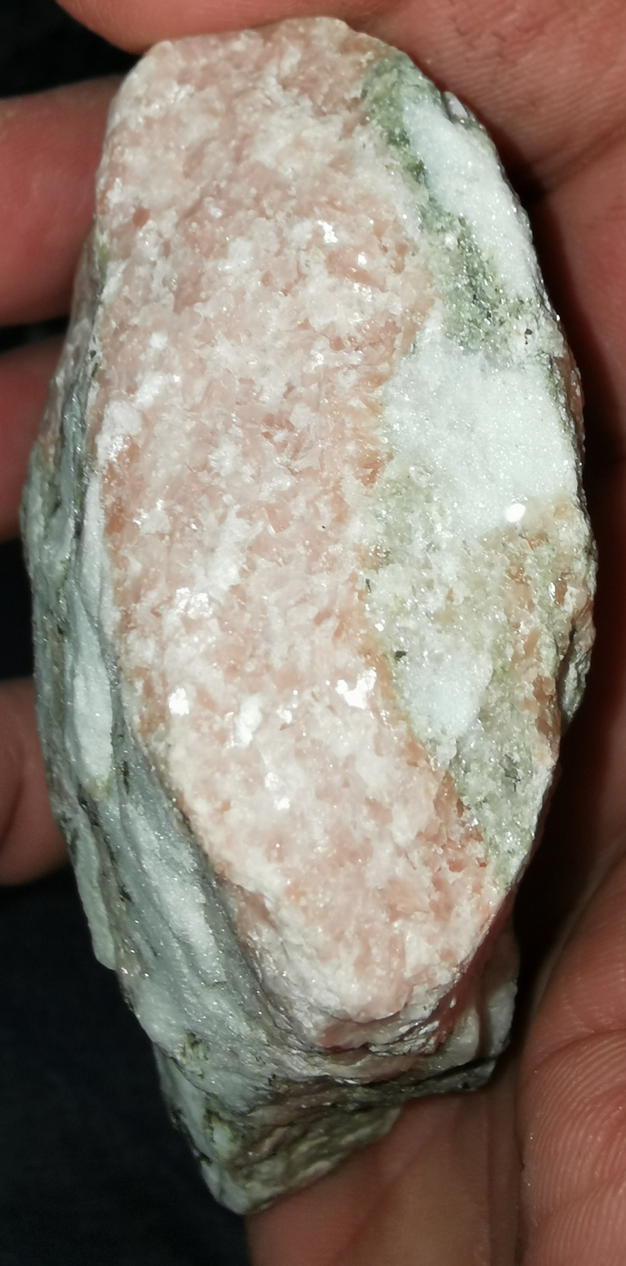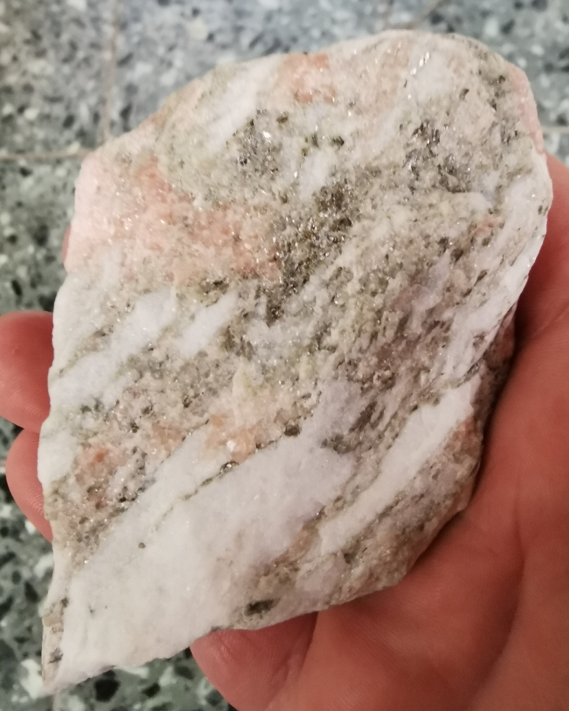 und dann ist natürlich noch Quarz und Feldspat vermischt. also von daher eben ein grober Granit. Und kalr könnte da auch noch etwas rosa Turmalin auch dabei sein. "
