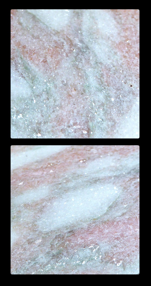 Ich habe mir viele Bilder von dem Marmor angesehen aber leider habe ich keines mit einer Macroaufnahme finden können. Kennst du den Marmor und hat der wirklich so eine kristalline Struktur?