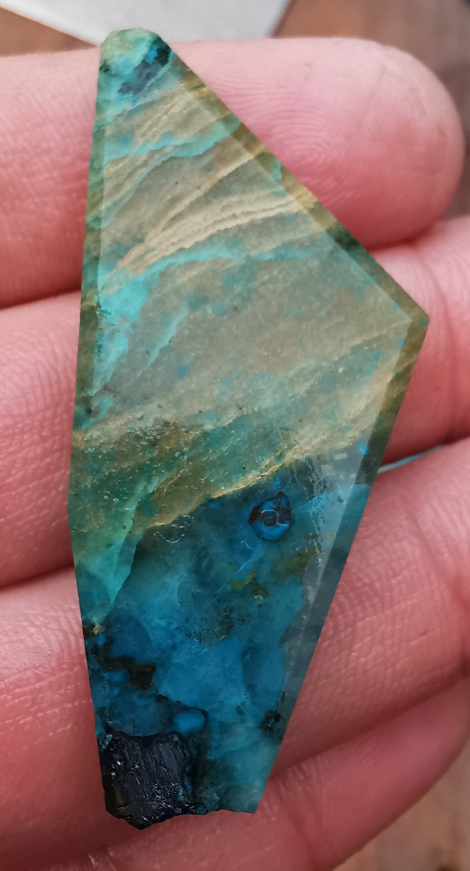 Durch das Schleifen und Polieren kommen die Farben richtig schön zur Geltung, während dessen vorher der Stein oft eher unscheinbar aussieht. :D