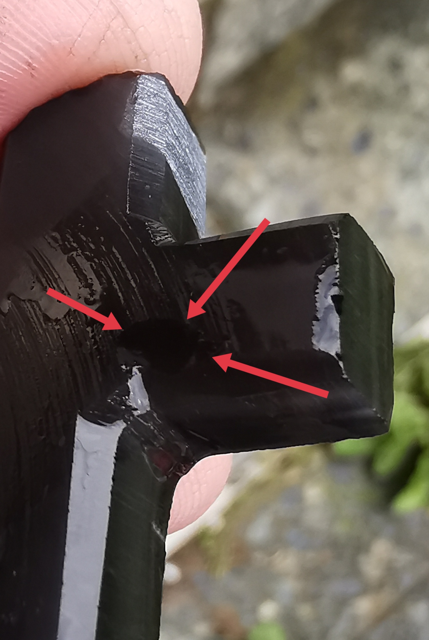 Den Serpentin würde ich persönlich vorsichtig an der Bruchstelle einfach grad und glatt schleifen..
