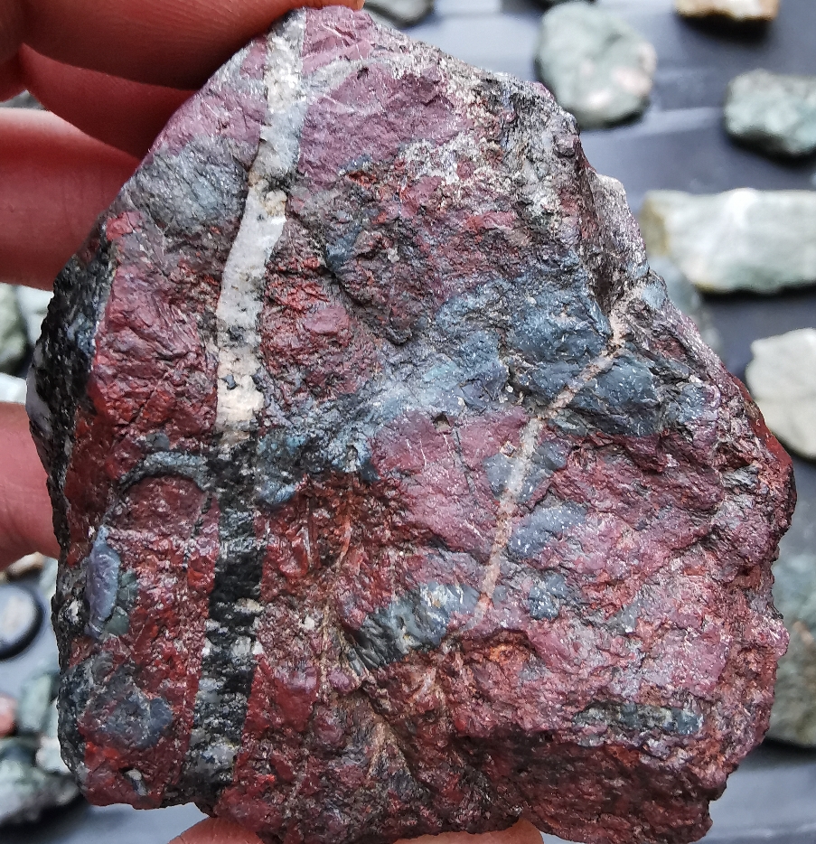 Sieht ja fast wie ein Breckzienjaspis mit Quarz-Ader aus
