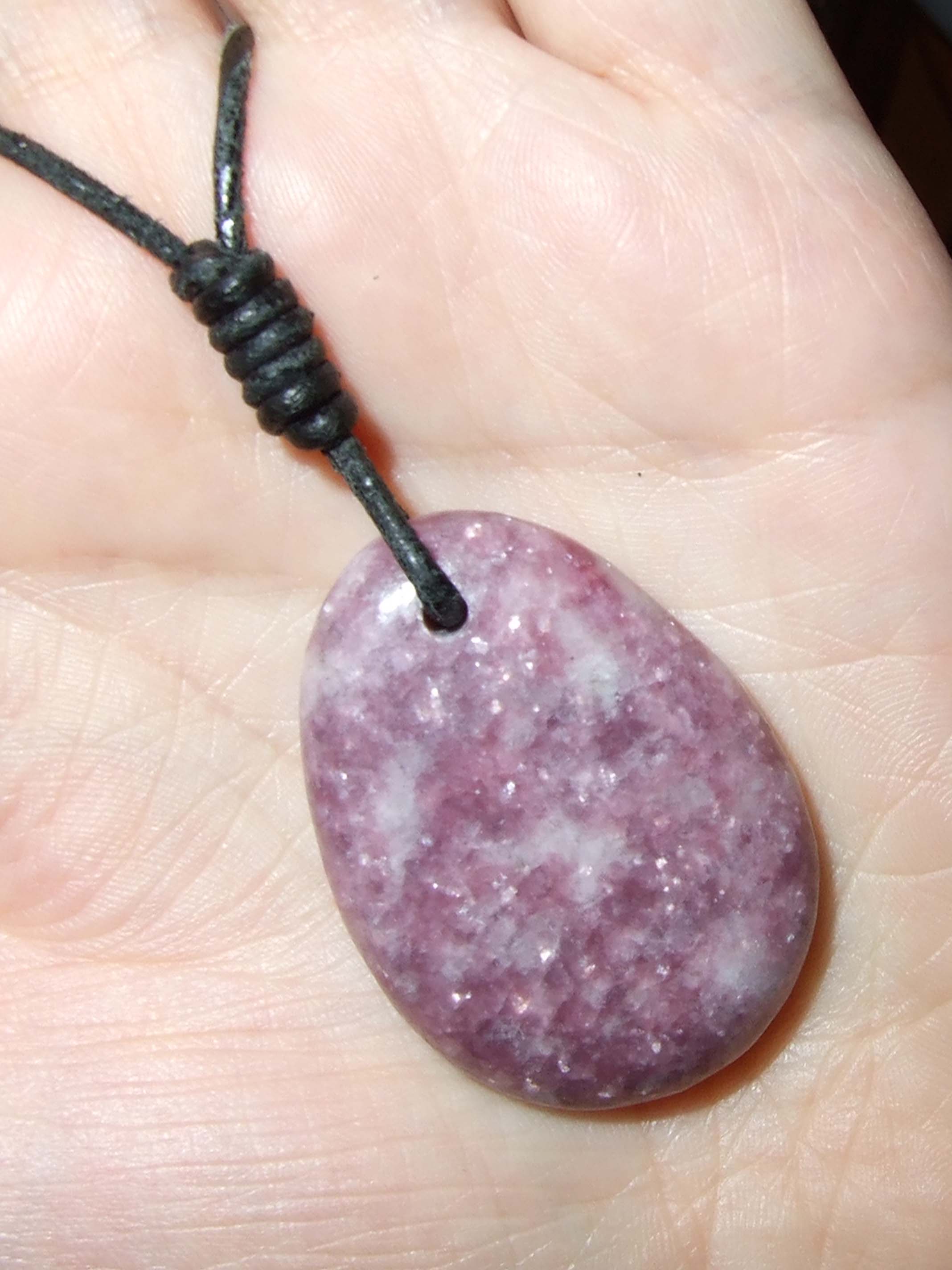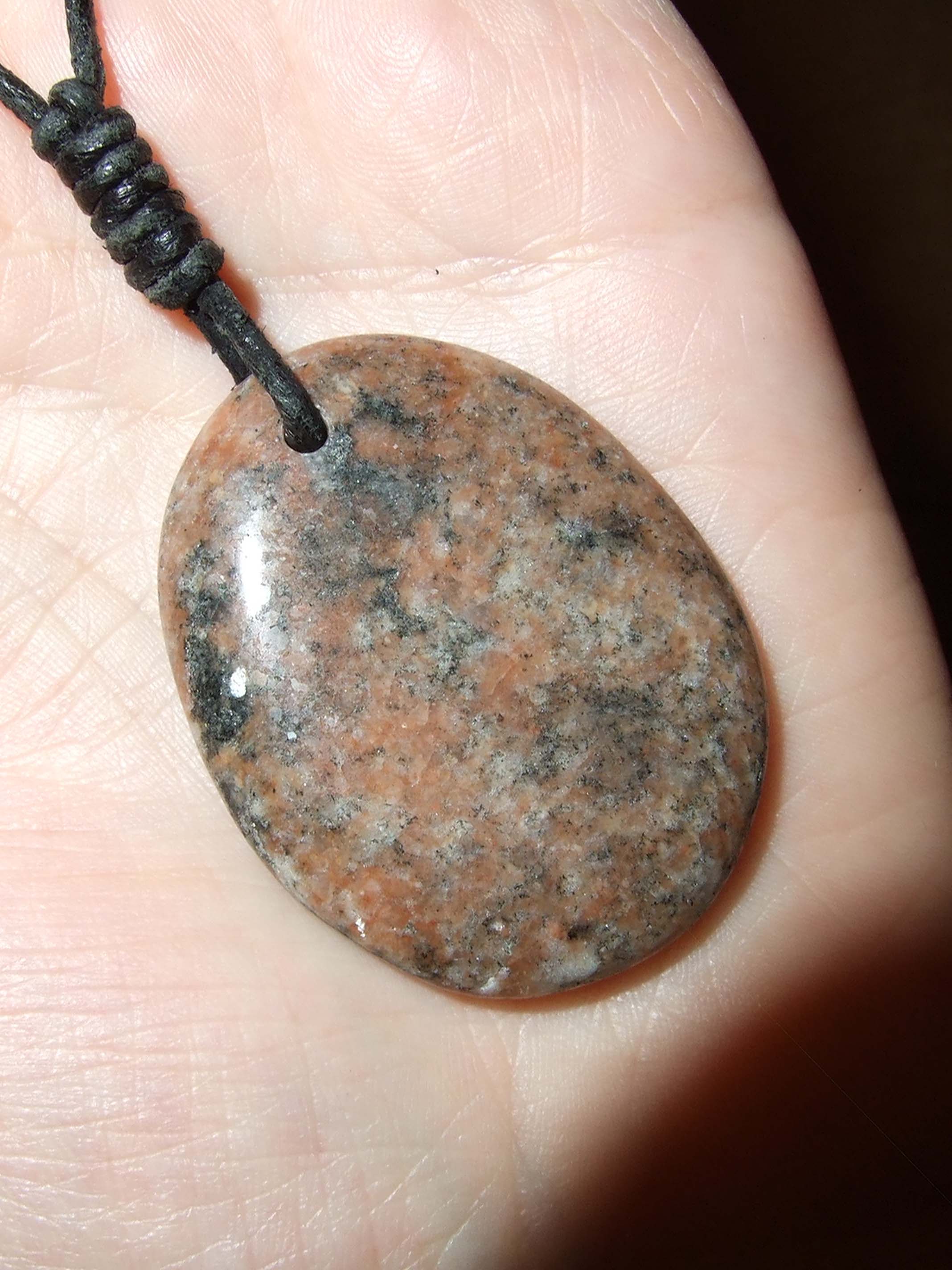 Da habe ich dann Lederbänder angebracht, jetzt wo ich den schönen Henkersknoten kann. Das gefällt mir nun viel besser als vorher. Und ich denke, so werde ich es dann auch belassen. Habe die Steinchen dann gleich mal eine Weile probe-getragen.