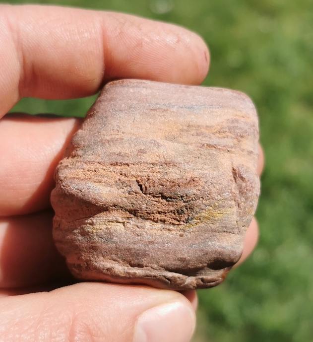 Nach einiger Zeit kamen wir an einem Feld vorbei, wo erst vor kurzem angebaut wurde. In dem ersten Meter des Feldes lagen mehrere Steine derselben Sorte und bei näherer Betrachtung fand ich sie sehr interessant und habe mir ein paar mitgenommen.