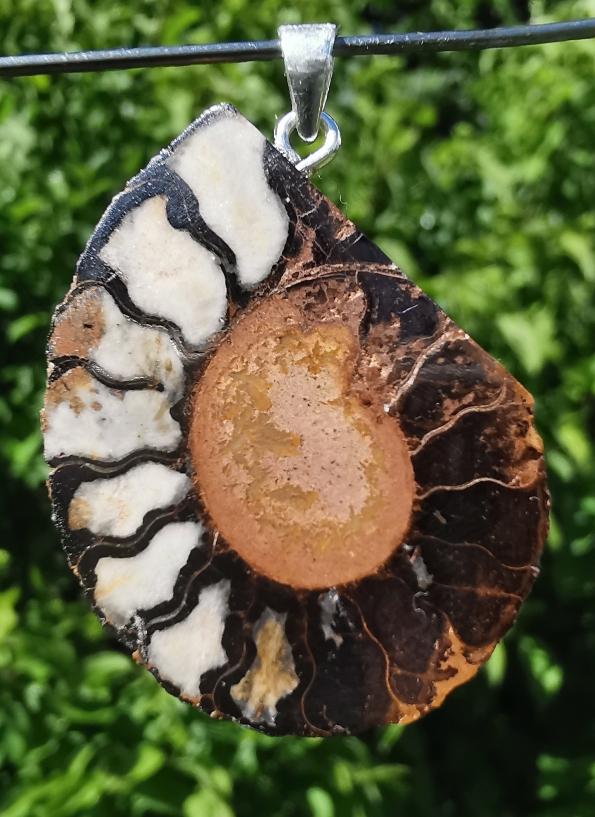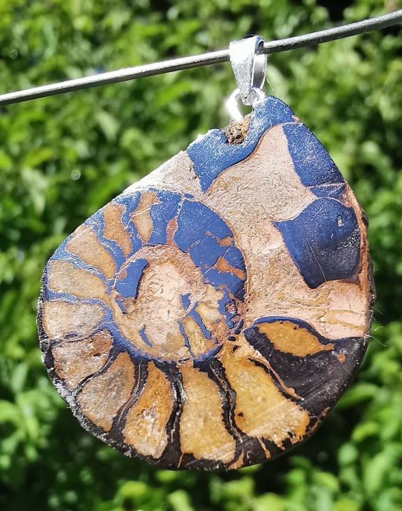 Die schwarzen Bereiche auf den Ammoniten haben dien typischen Metall Look. Da das auf Fotos zu sehr spiegelt und blendet, habe ich jedes Foto so erstellt, dass diese Spiegelung nicht zu sehen ist. Auf Wunsch kann ich weitere Bilder senden.