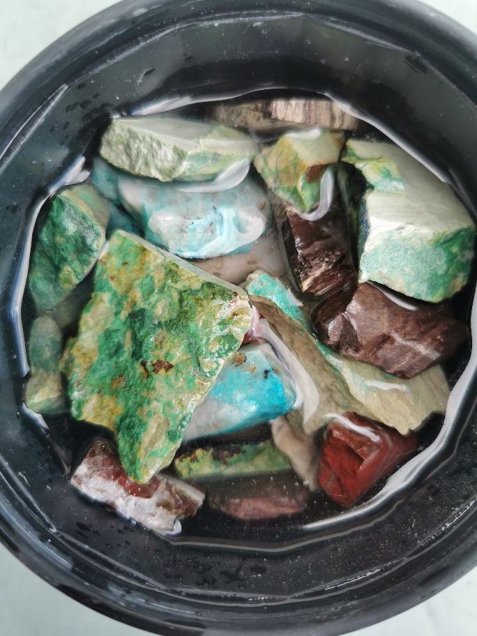 Habe dann noch ein paar größere Fundstücke (letztes Bild): Jaspis, Holz, Achat in der Trommel. Bin gespannt wie die nach 6 Tagen aussehen.