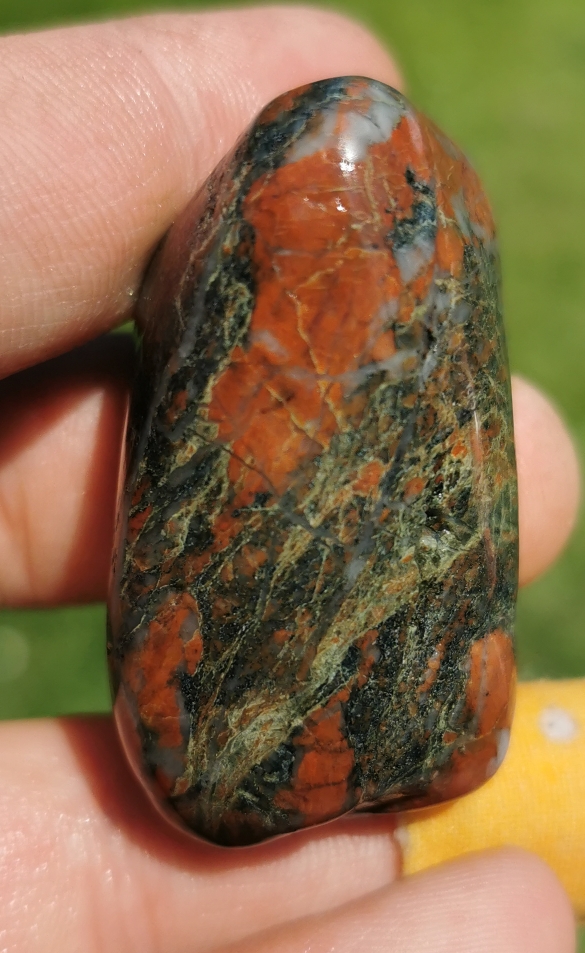 Der ist total leicht zu Ritzen! Jaspis hinterlässt einen tiefen Ritz und selbst der Fingernagel kann spuren hinterlassen. Fühlt sich aber definitiv nicht nach Kalk an.Wildflower hat geschrieben: 25.05.2021, 06:37 Wenn das so schnell ging mit dem Trommeln, dann muß es also ein sehr weiches Muttergestein sein. Kannst du ihn ritzen, bzw, wie leicht kannst du ihn ritzen?