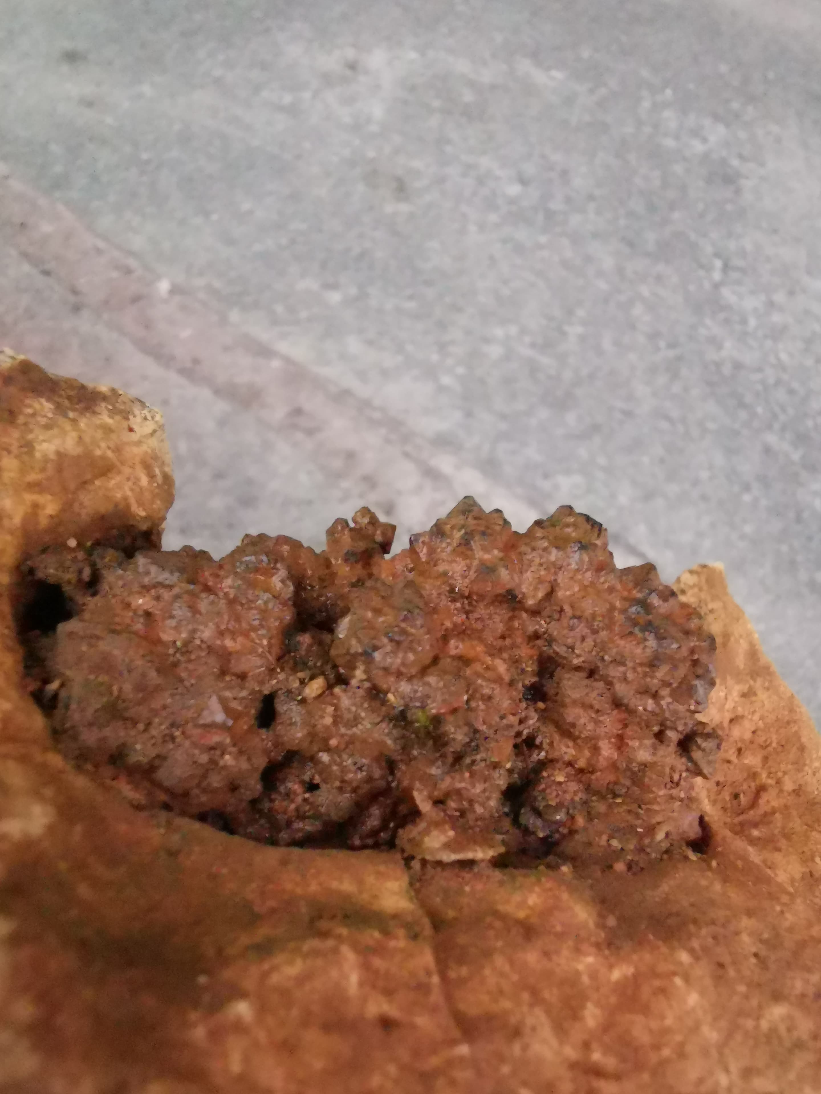 ja, ist mit was überzogen.. weiß nicht was.. limonit, mangan, eisenoxid wäre typisch - passt aber nicht so richtig