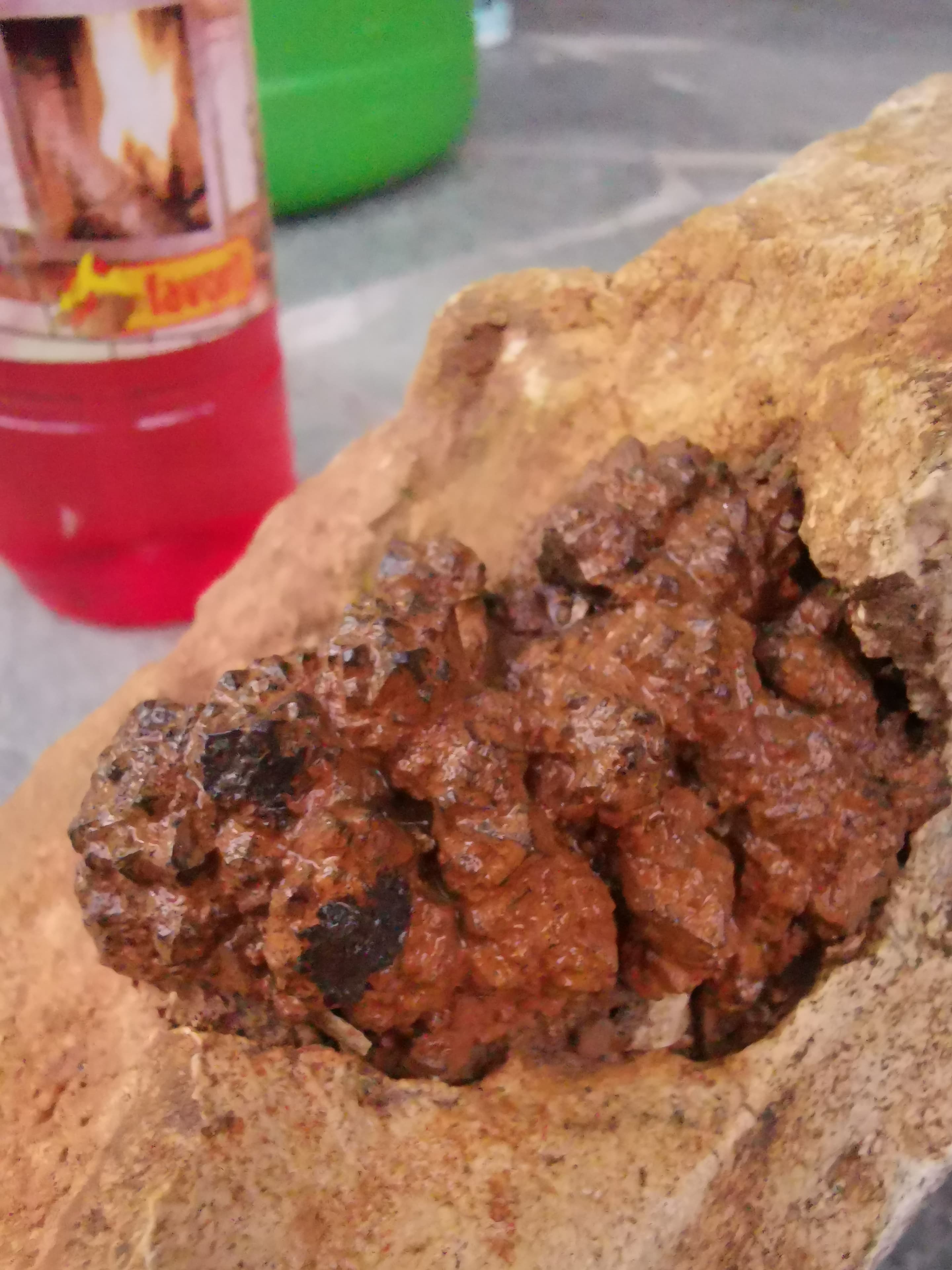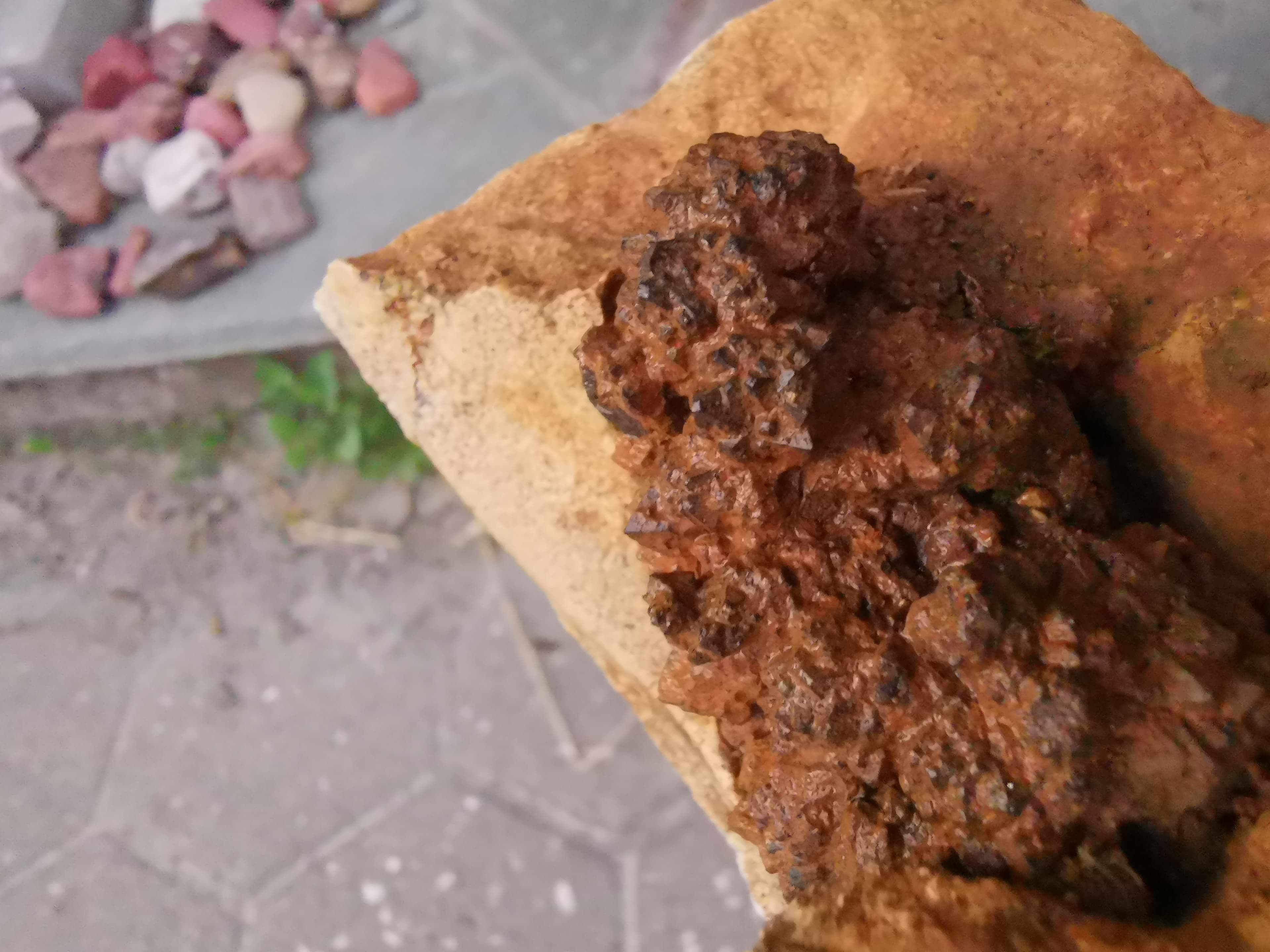 War heute im Steinbruch Hohenmirsberg und habe dort ein interessantes Fundstück gemacht. Die Kristalle ähneln Calcit. Was sagt ihr dazu?