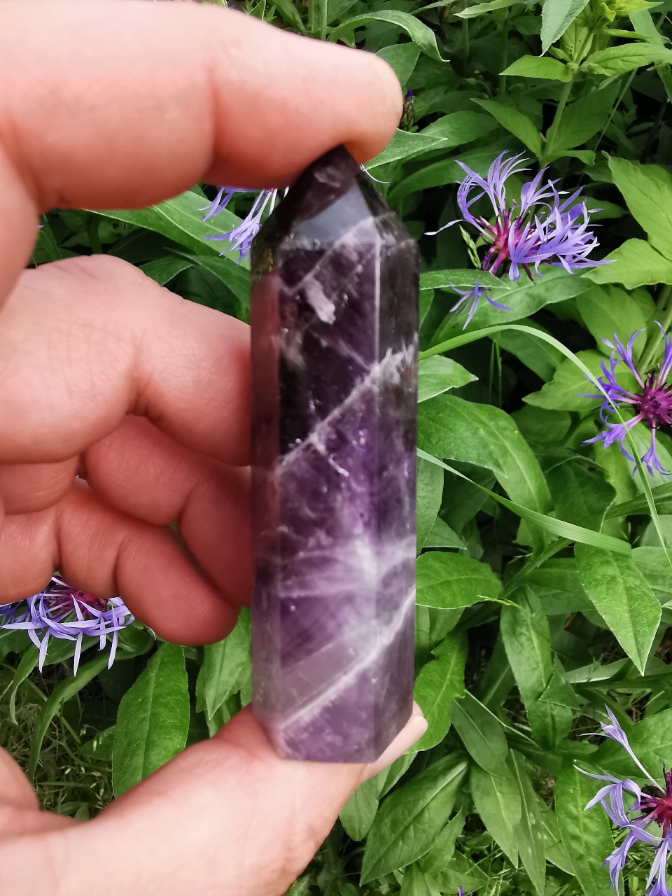 Dazu hatte er sich auch noch eine Amethyst Spitze gewünscht. Die er ebenfalls bekommt. Da werde ich ihm jedoch gleich sagen, dass diese nicht so gewachsen, sondern geschliffen wurde. Im Gegensatz zu der Bezeichnung unecht, wird ihn das nicht stören auch auch nicht seinen empfundenen Wert mindern.
