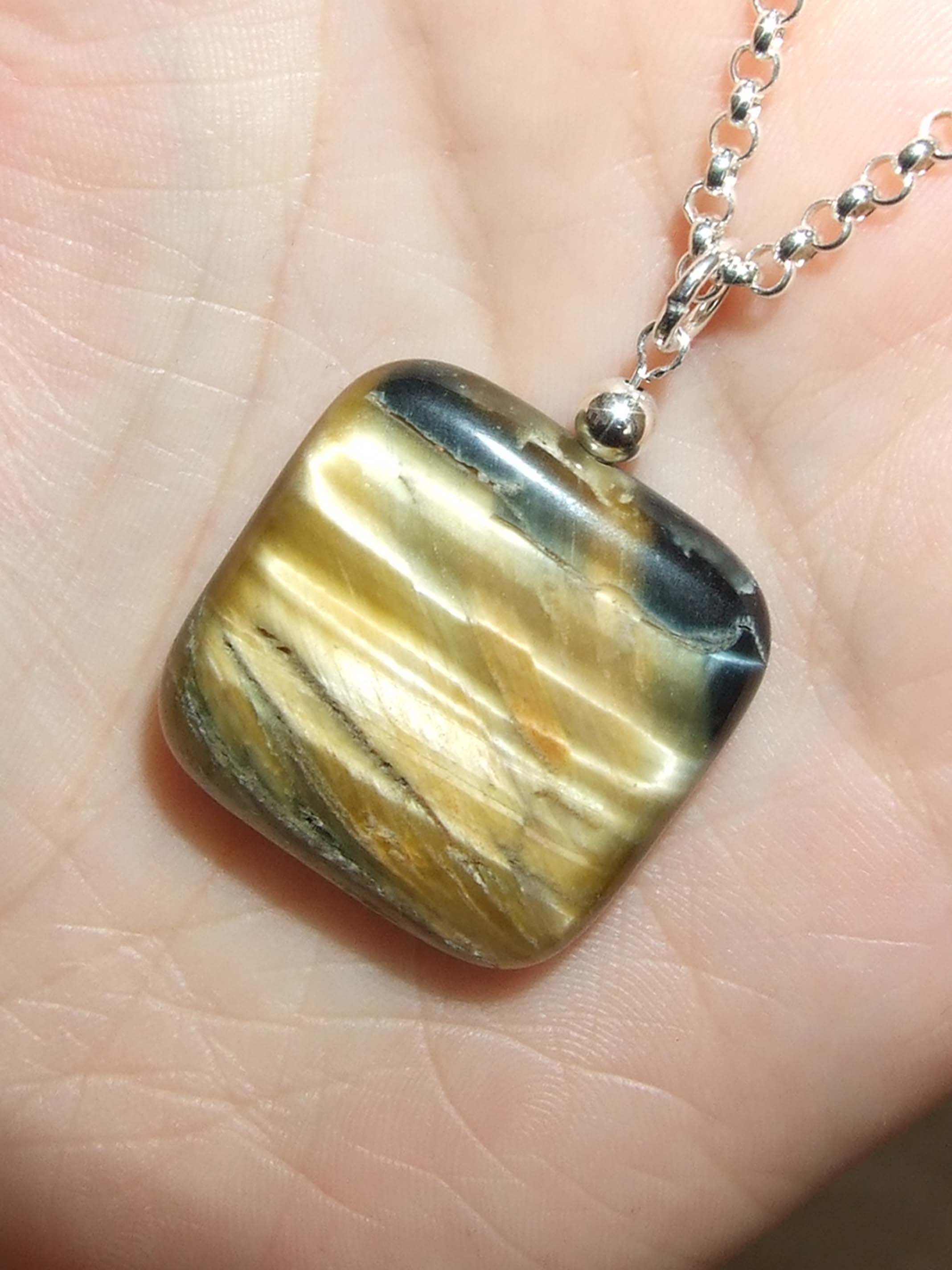 Bei mir ist es ein gelblichen Falkentigerauge, was ich gestern zum Anhänger verarbeitet habe.