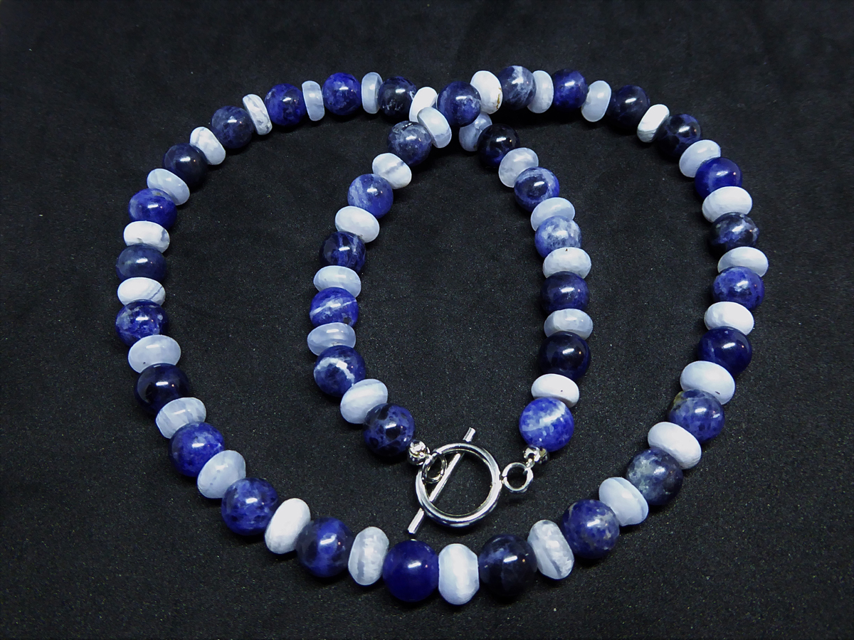 Ich will mal ausprobieren, ob sodalith und blauer chalcedon wirklich blutdrucksenkend wirken. also hab ich mir eine Kette gemacht, sie sollen ja auch noch anderes bewirken und passen somit gut zusammen und zu mir gerade. ich werde berichten.