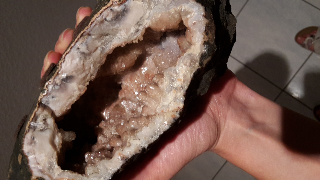 Es wäre sehr hilfreich ein scharfes bild zu haben... Mmakro von den hubbels. Mich erinnert rs an eine amethystquarzgeode die ich habe. Ich zeig mal ein detail, vergleich. Deins ist vielleicht eine quarzgeode.