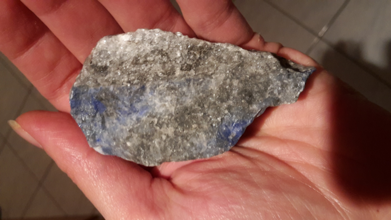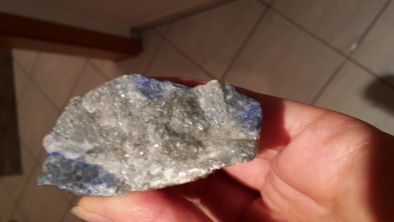 Ich tendiere mehr zum Azurit im Muttergestein, es sieht schon eher nach nach Glimmerschiefer aus, als nach Granit. Aber 100% kann ich es leider nicht sagen, dafür kenne ich mich mit "normalen" Rohsteinen viel zu wenig aus. Pezzottait hatte mal Bilder von den Exemplaren aus Rauris hochgeladen und das passt sehr gut. Leider hat meine keine blauen runden Flecken, das sieht so schick aus :)