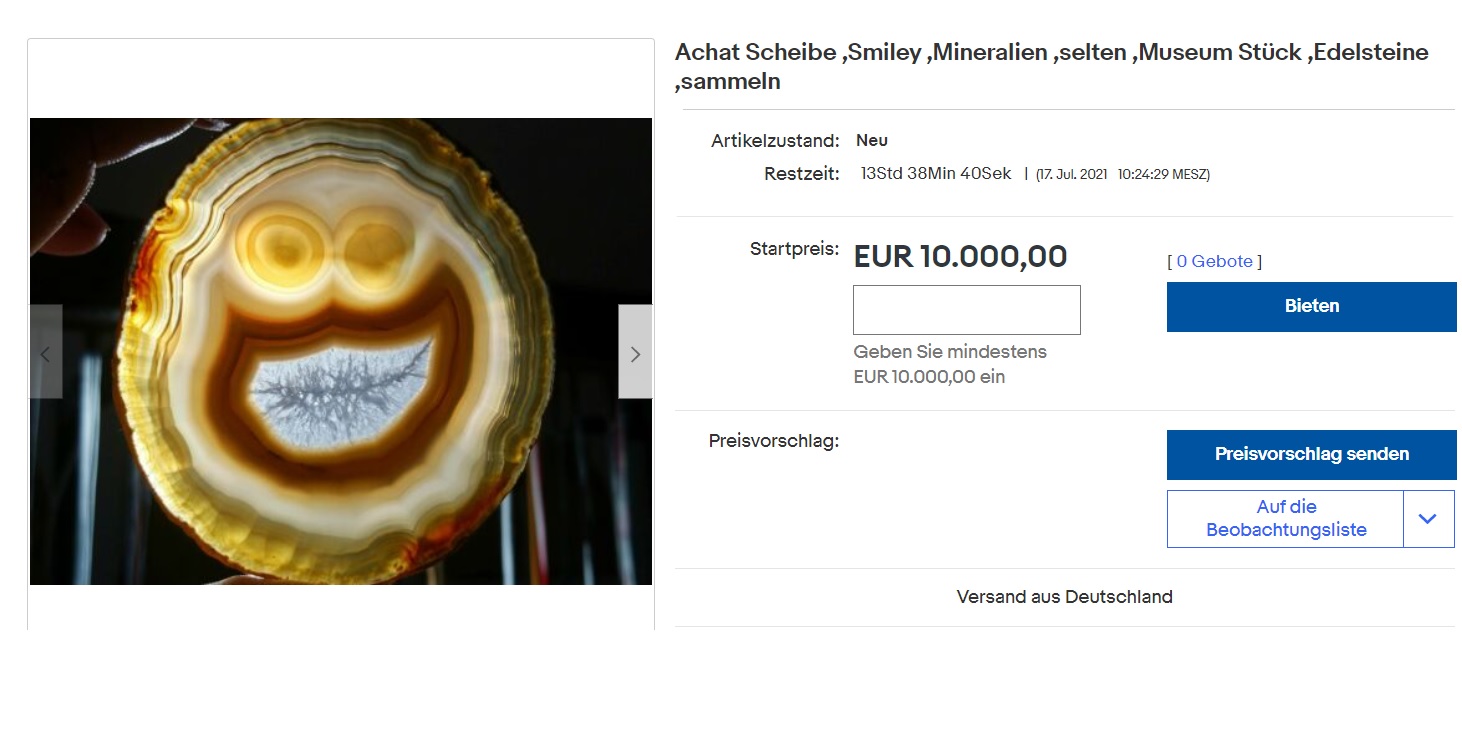 Also im Moment bestimmt den Preis der Verkäufer.. alle seine Anzeigen sind maßlos übertrieben.Wildflower hat geschrieben: 17.07.2021, 07:36 Den Wert eines Minerales bestimmt nicht das Mineral, sondern der Käufer, ..