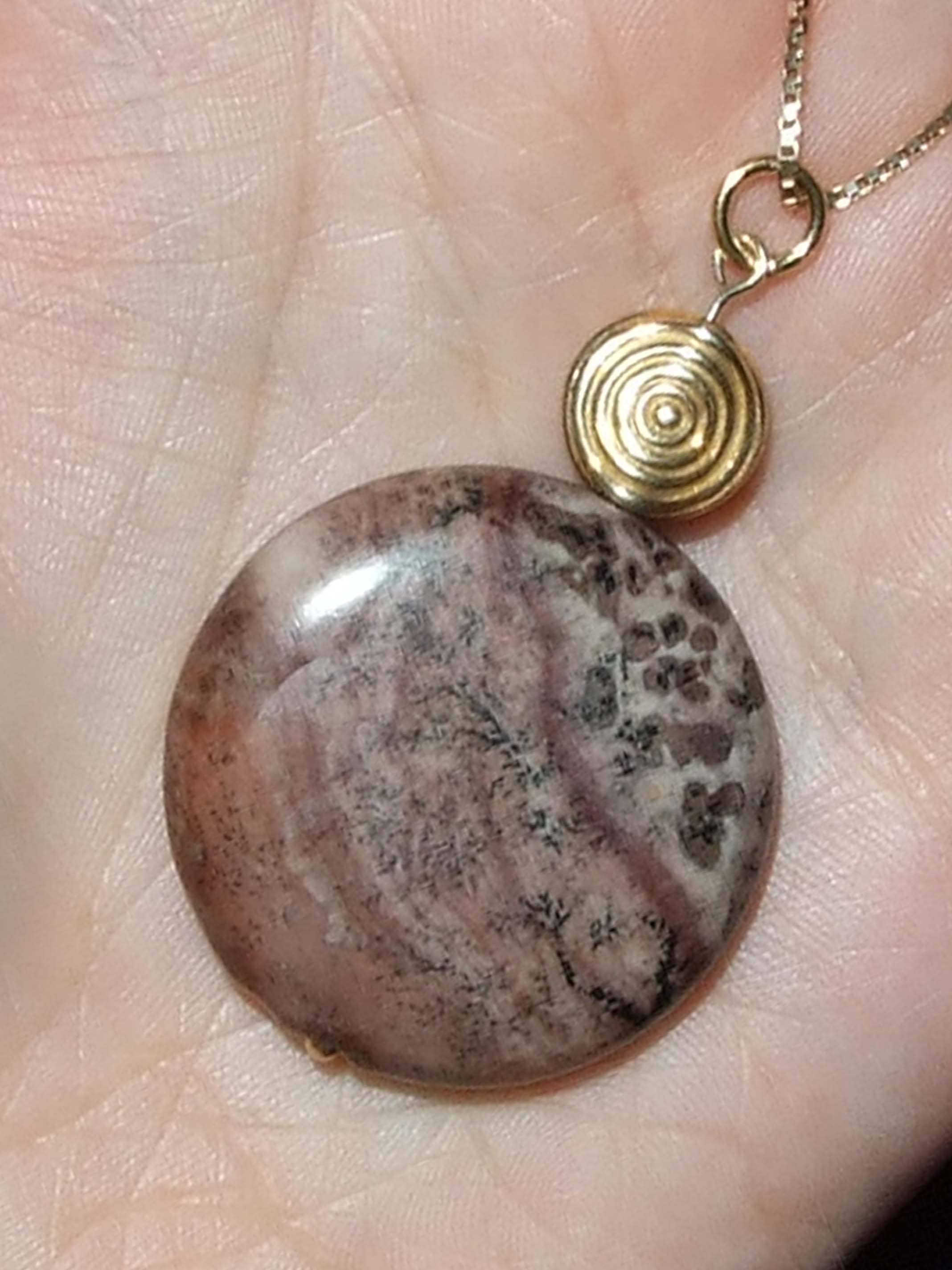 Diesen wiederum kann ich mir auch als Freeform-Scheibe sehr gut vorstellen, wenn er jetzt nicht zu riesig ist. Aber so im Verhältnis zu deiner Hand, könnte er doch die optimale Größe für einen Anhänger haben.
