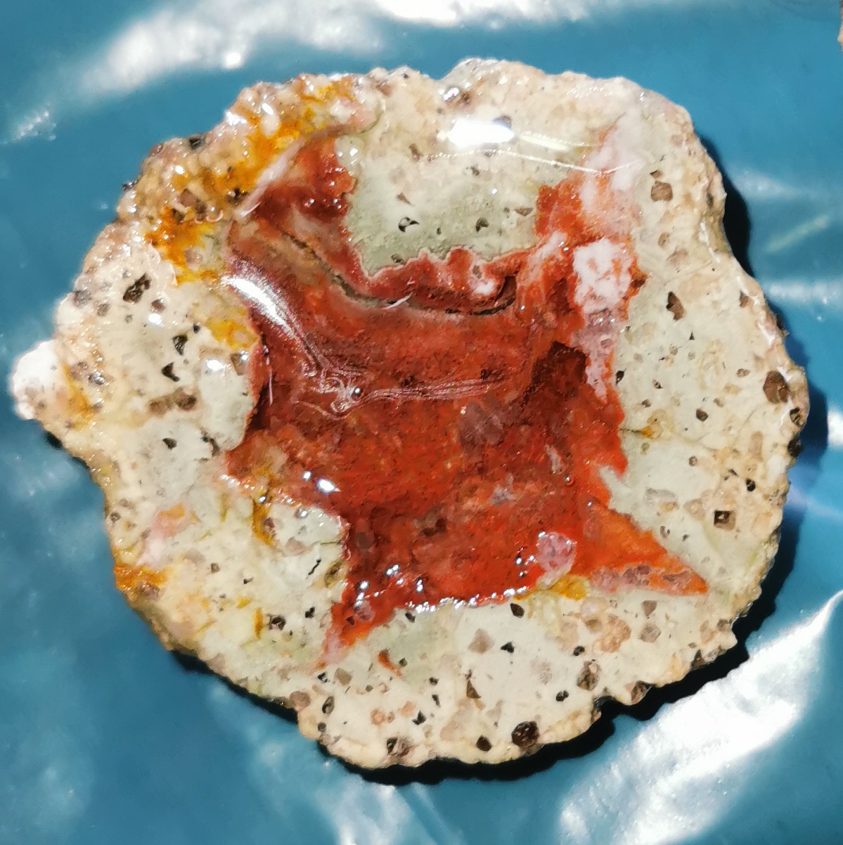 Gerade, wenn dieser blau ist, wurde der gefärbt. Soweit ich weiß, gibt es weltweit nur eine einzige kleine Stelle, wo man blauen Achat finden kann und der sieht anders aus, als das gefärbte Zeugs.