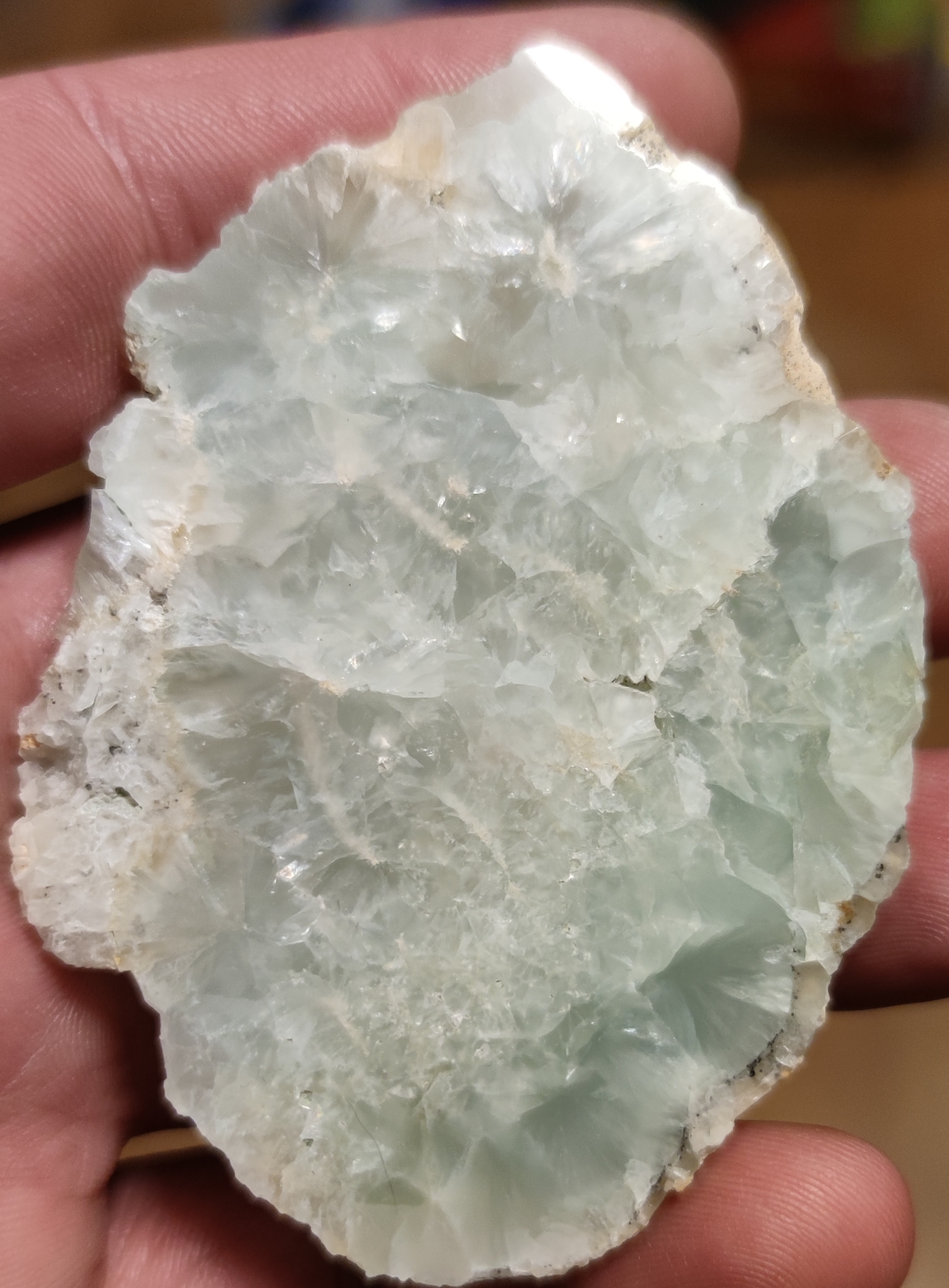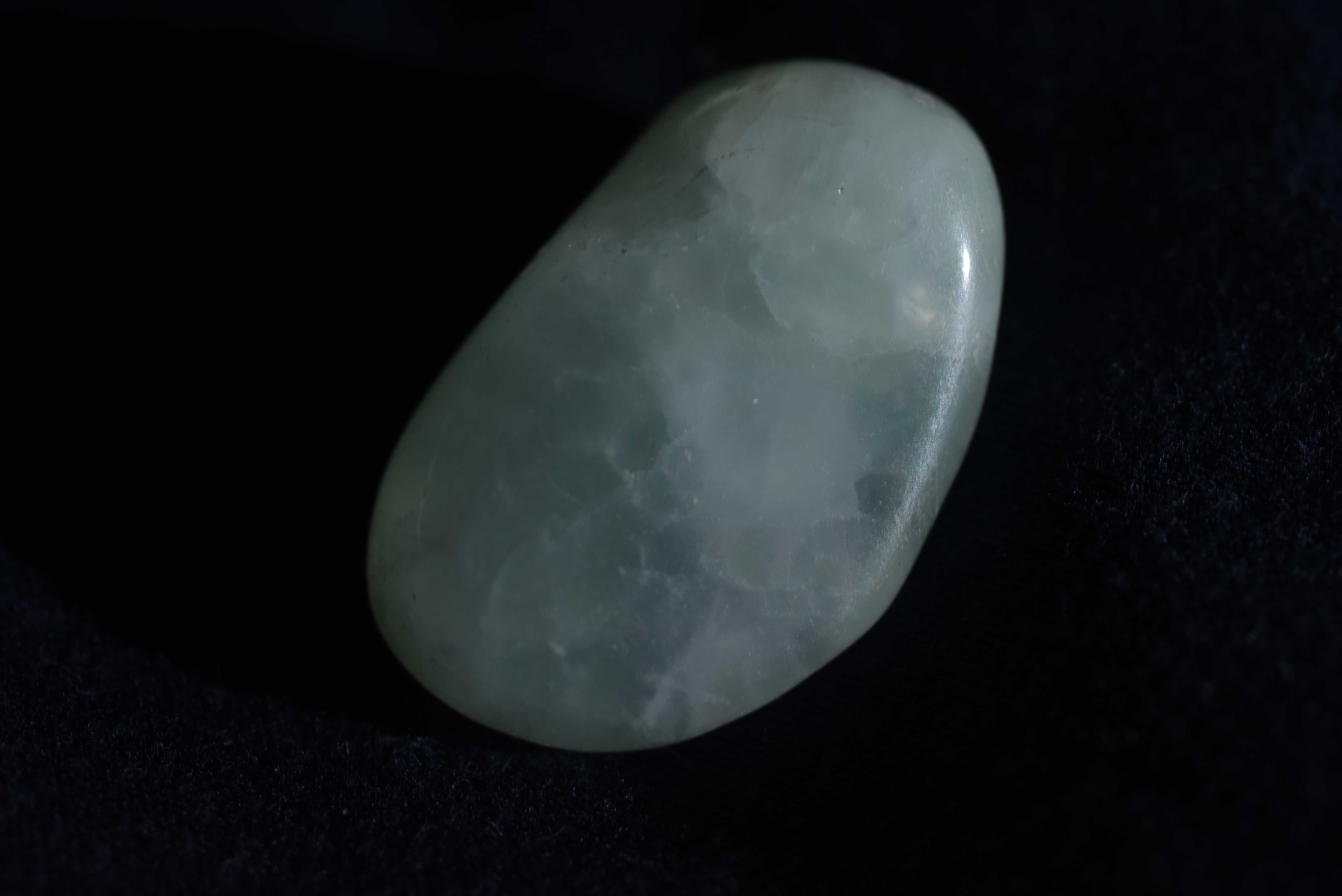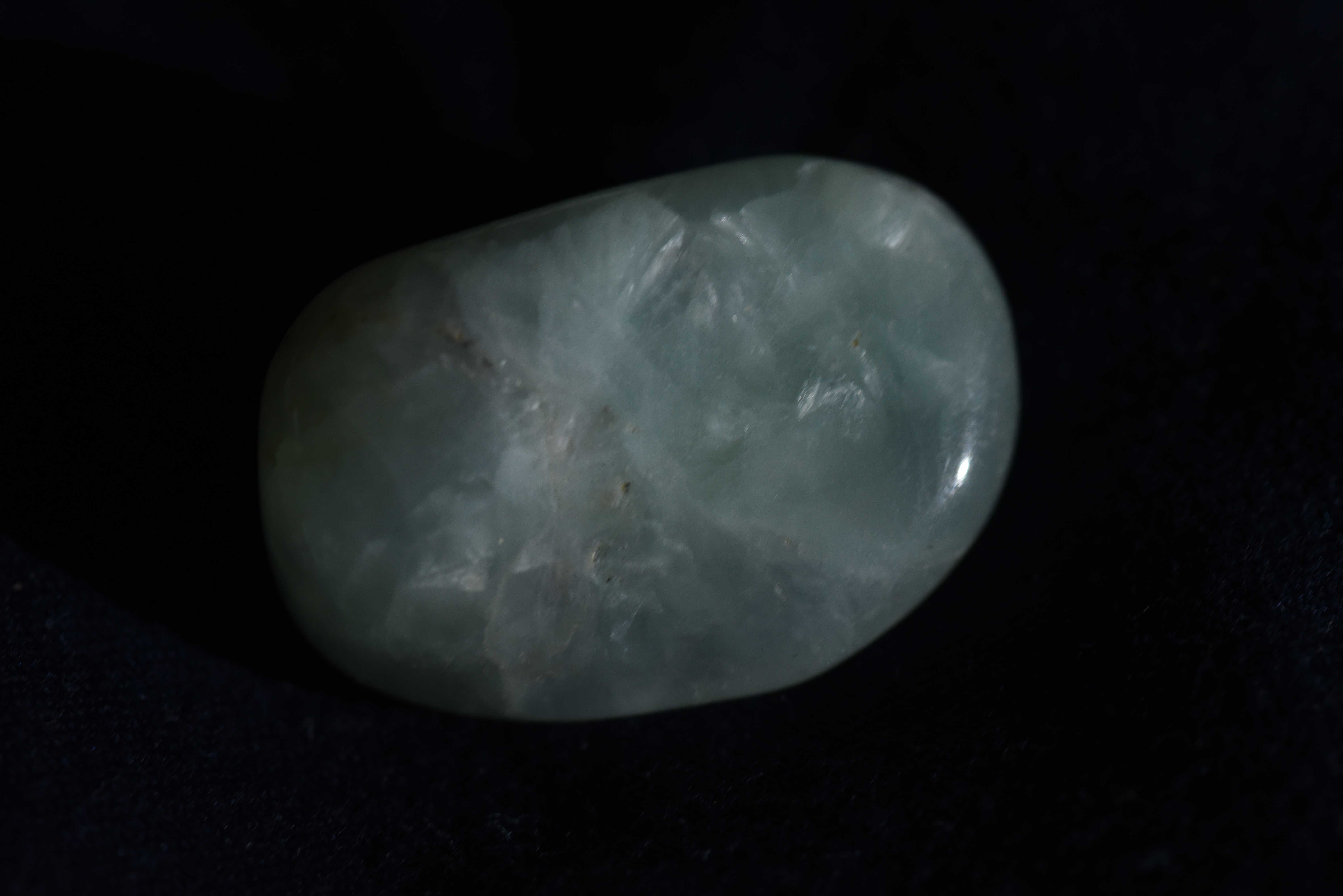 Ich habe folgende Fotos gemacht, die die Struktur zeigen. Die Farbe ist jedoch viel zu blau. In der Realität ist der Stein grünlich.