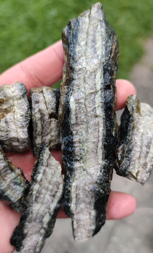 Ja, der Serpentinen ist mir auch wieder über den Weg gelaufen und ich habe ihn massenhaft in schwarz gefunden. Jedoch habe ich auch zwei grüne Stücke gefunden, die ich auch Mal eingepackt habe. Entschuldigt bitte, ich bekomme ihn einfach nicht besser aufs Bild