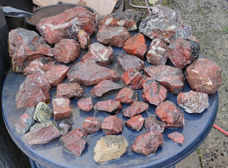 Einen einfachen roten Jaspis habe ich auch gefunden, wobei ich da nur sehr wenig mitgenommen habe. Einen durchgehend roten Stein finde ich jetzt nicht wirklich von Interesse.