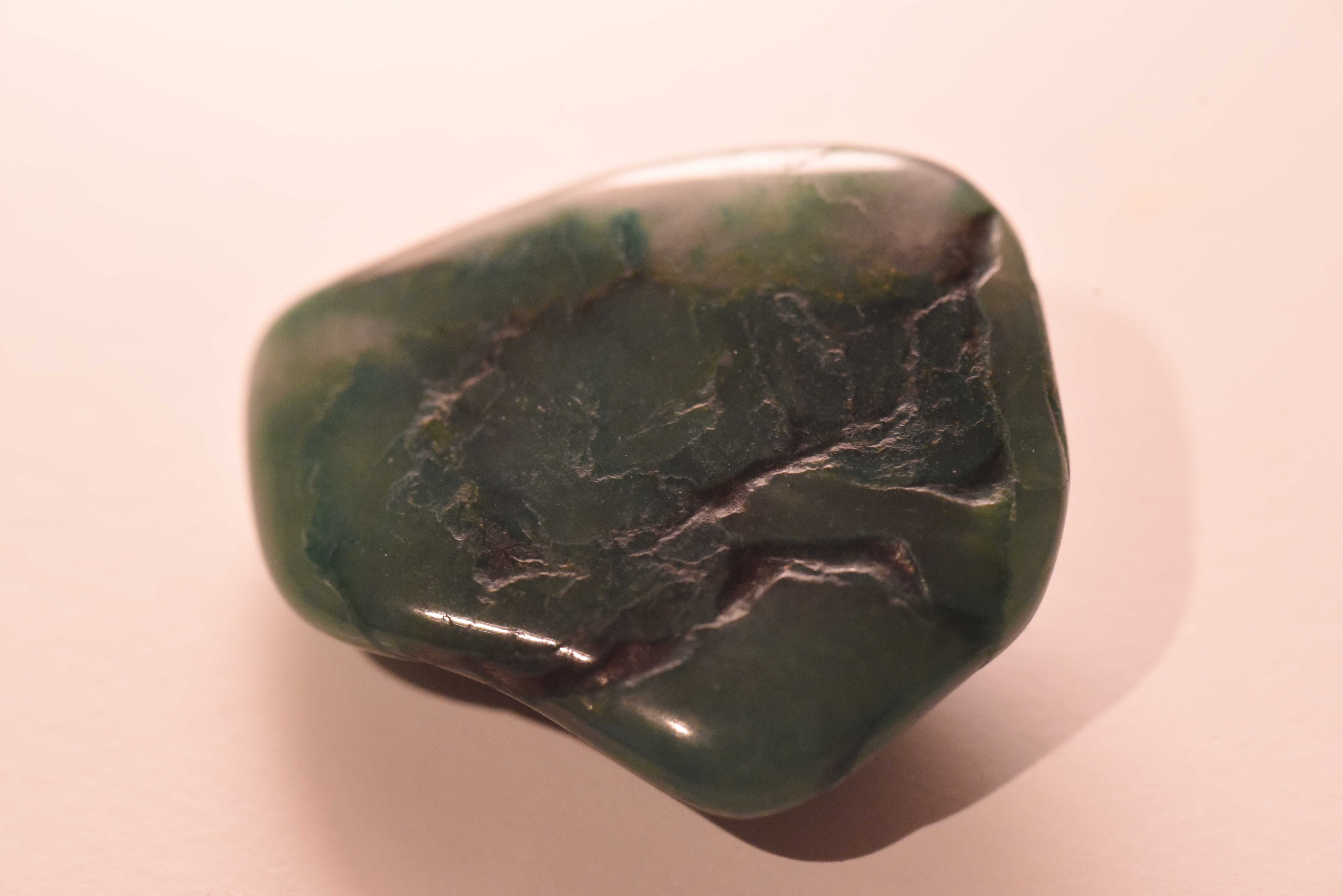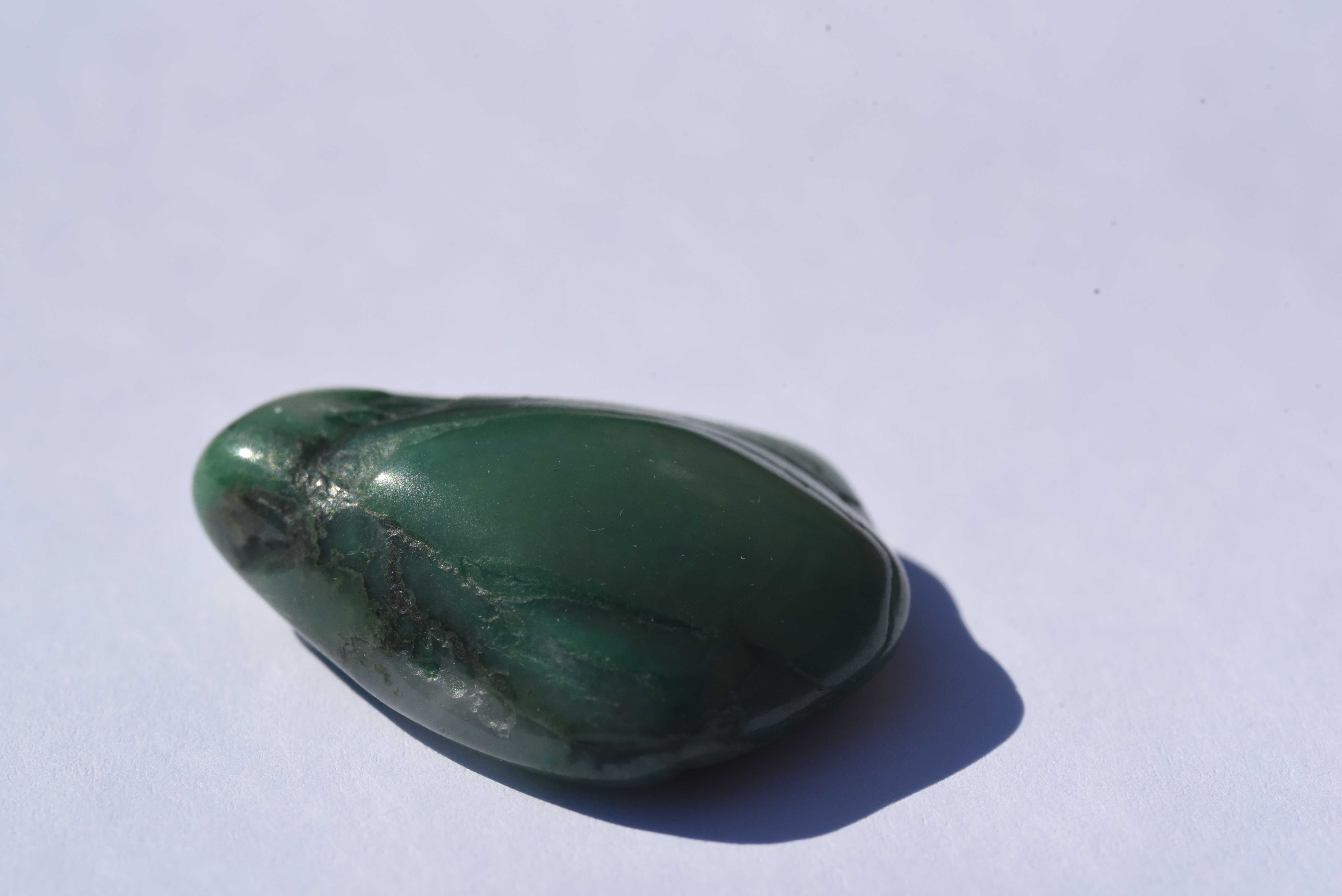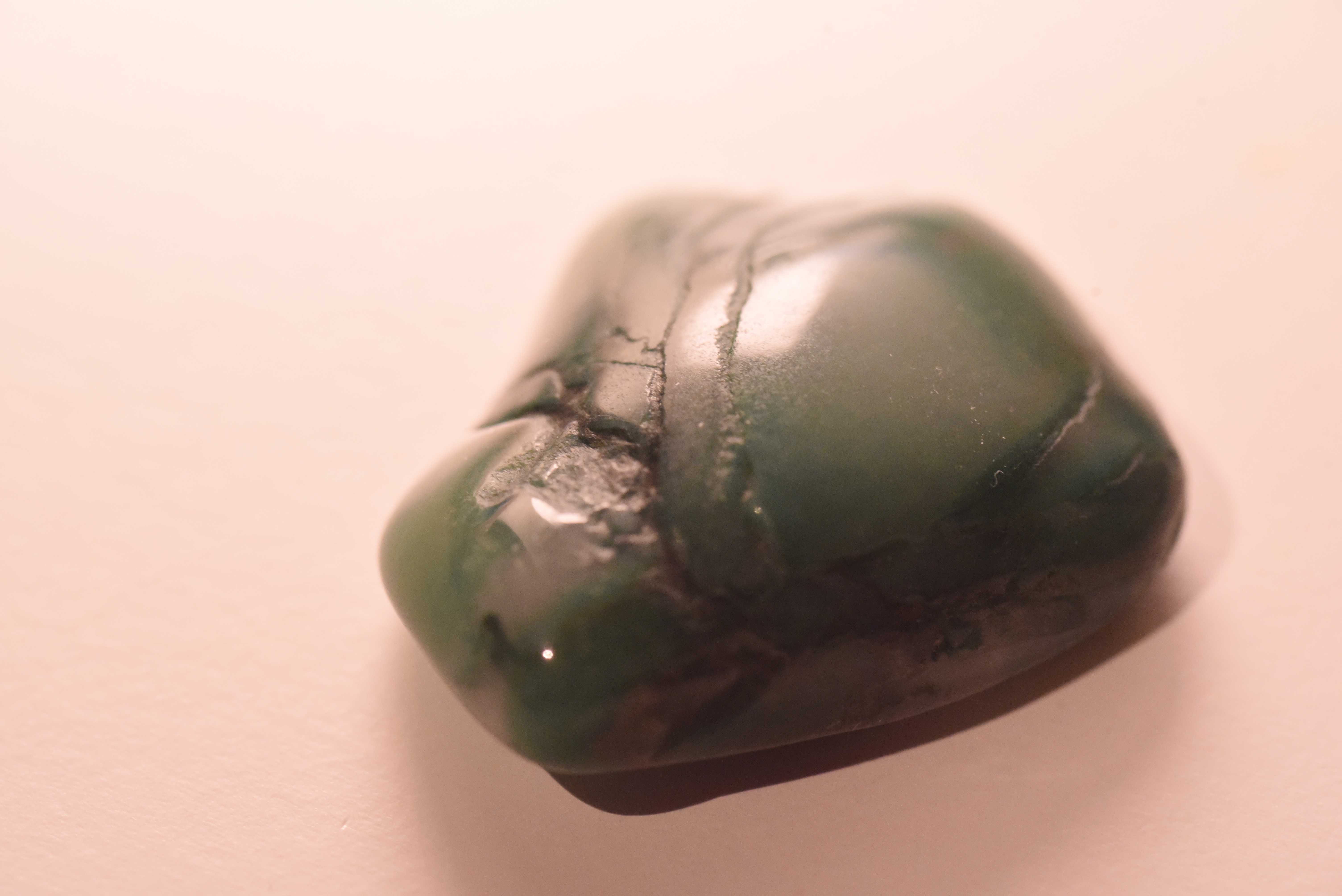 Diesen Stein hatte ich in einem Sack voller verschiedener Steine erhalten und ich kann ihn nicht eindeutig identifizieren. Könnte es sich um Jade handeln? Da Jade aber normalerweise eher teuer ist vieleicht doch eher Budstone/Grünschiefer, Prasem oder Moosachat?