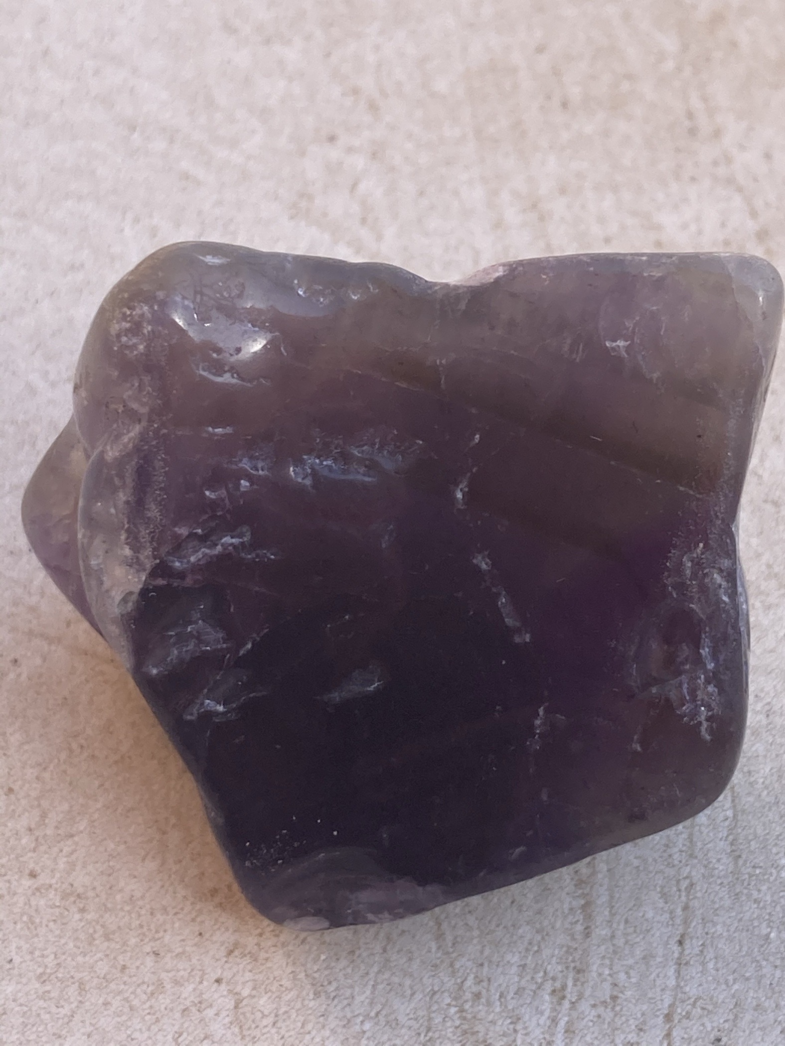 Entweder Amethyst, da stört mich allerdings der Grauanteil, oder Fluorit, würde ich sagen. fluorit-bunt-regenbogenfluorit-t967.html