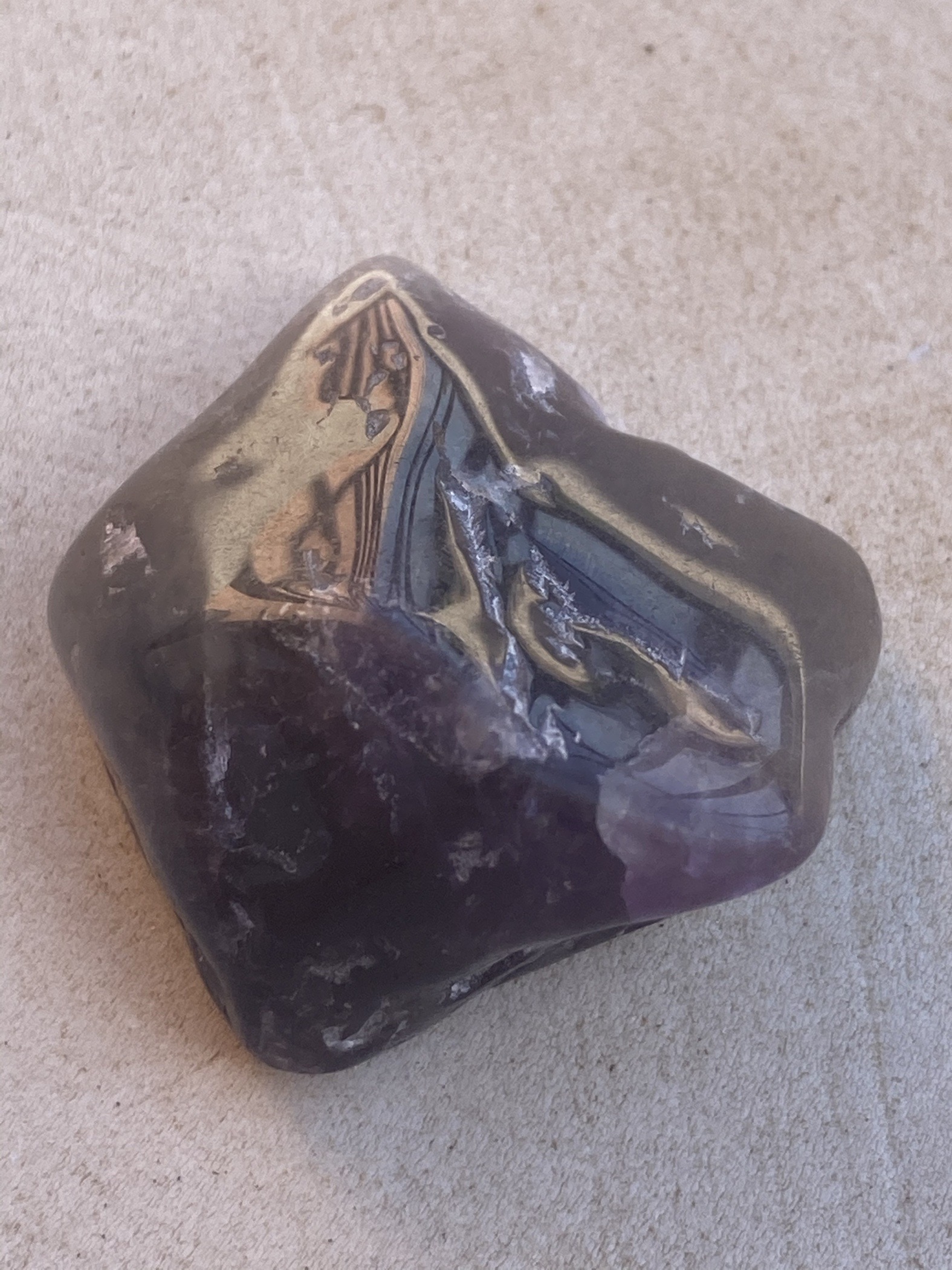 der Grauanteil ist doch beim Amethyst immer dabei.. das sieht aus wie eine getrommelte Spitze.