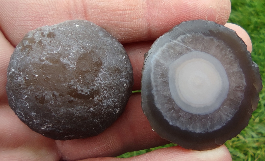 Es gibt da zwar auch solche Kugeln, jedoch nur sehr selten und nicht ganz so perfekt rund. Der Verkäufer hatte gut 30 Stücke davon und alle waren gleichmäßig rund gewesen. Definitiv nicht bearbeitet.